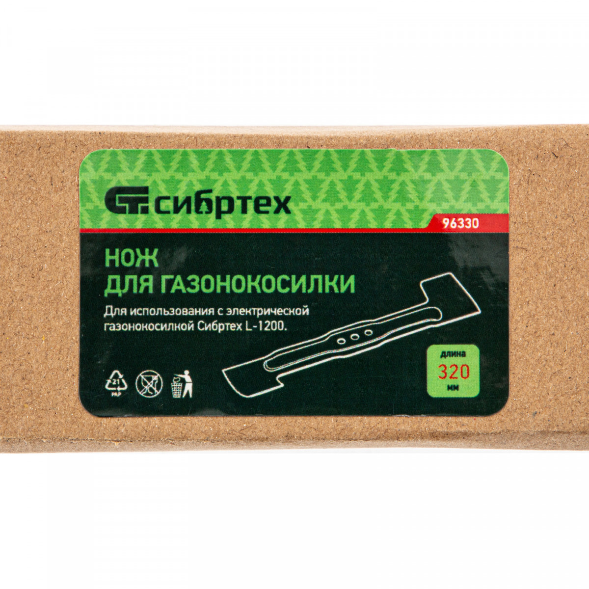 Нож Сибртех 96330 длиной 32 см предназначен для установки на электрическую газонокосилку L1200 96607. Он используется для стрижки газонной травы на дачных участках, кортах, а также для ухода за придомовыми территориями.