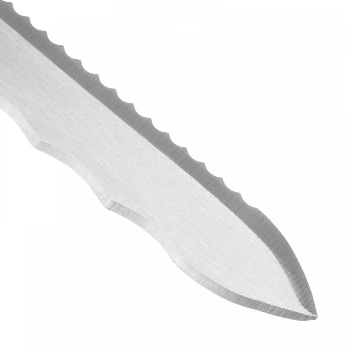 • Лезвие из «нержавейки» — нож не разрушается от воздействия влаги, обладает необходимой твердостью.