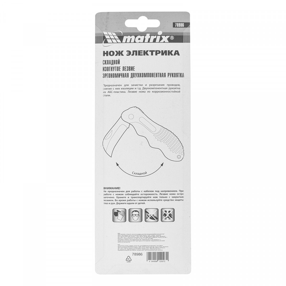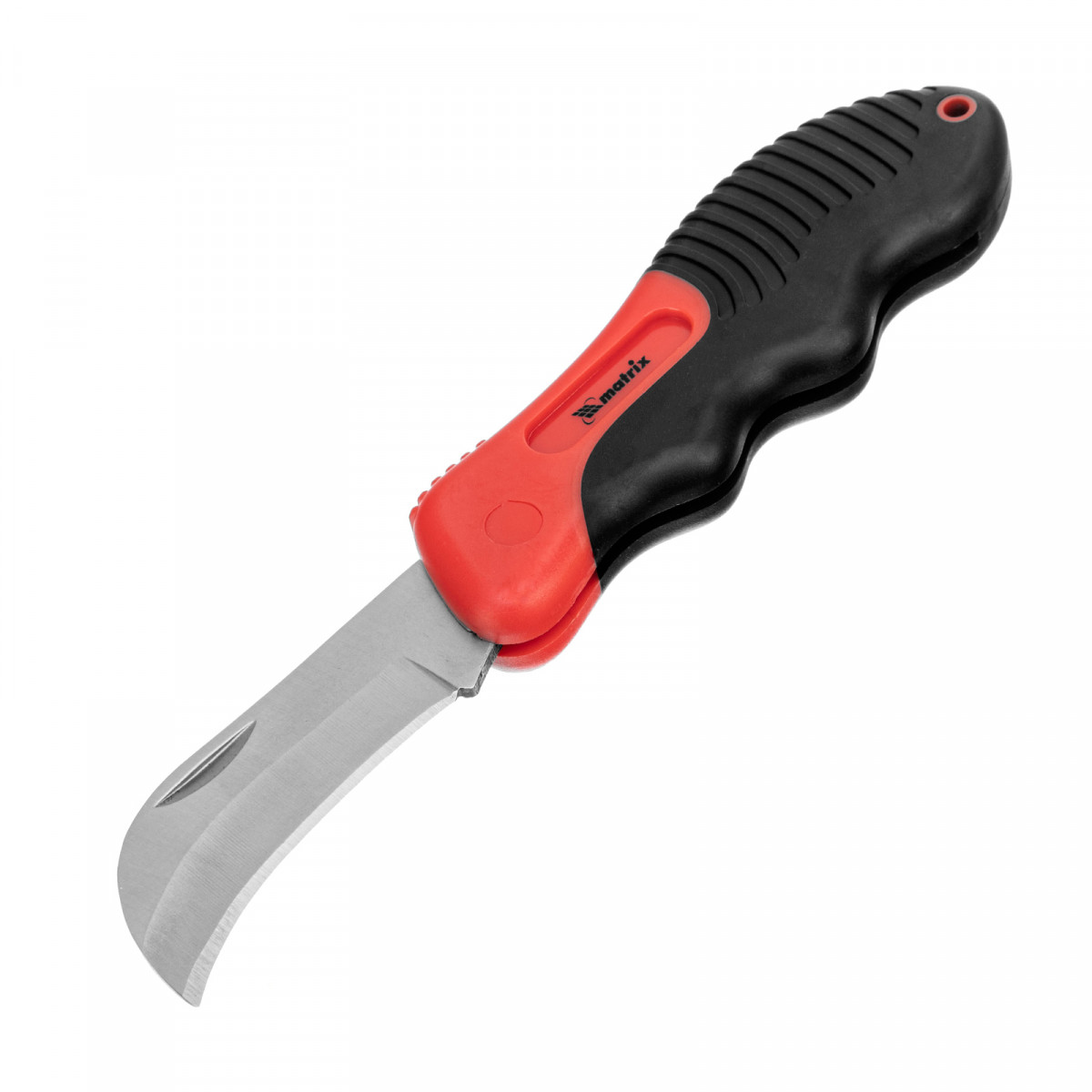 Нож электрика, складной, изогнутое лезвие, эргономичная двухкомпонентная рукоятка Matrix