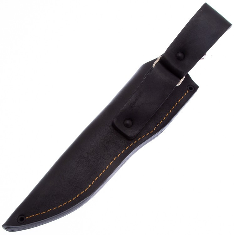 Рукоять выполнена из стабилизированной древесины ореха. Дерево является одним из самых традиционных и распространенных материалов для рукоятей ножей. Основным плюсом древесины является то, что, благодаря своей текстуре, она позволяет без особых усилий практически любую художественную форму рукояти. Традиционно используется на охотничьих ножах.