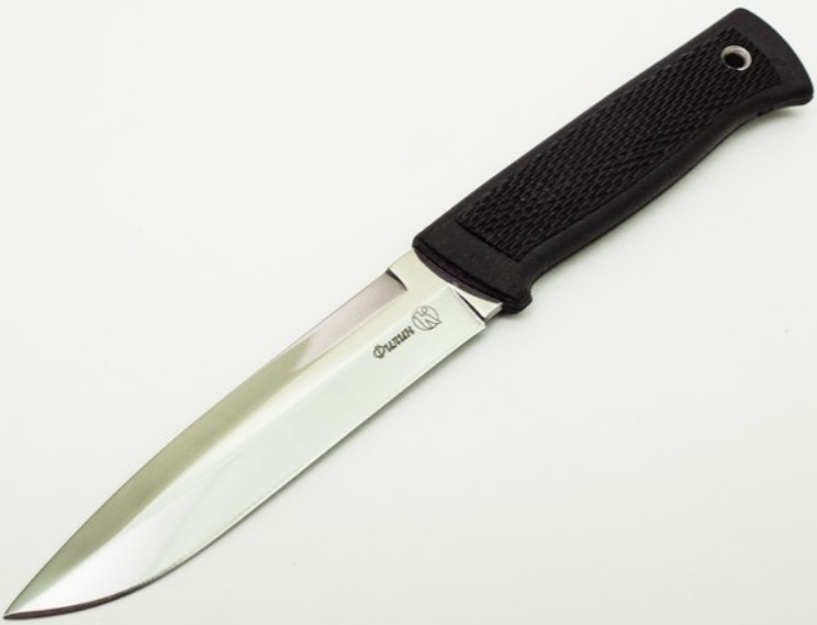 Отличительные особенности ножа – практичная форма, удобная эргономичная рукоять с цепким рифлением и малый вес, в совокупности делают из новинок отличных помощников на каждый день. Тонкое сведение и толщина 3.8мм позволили добиться отличных режущих качеств. Конструкция ножа сплошная, т.е металл на клинке и рукояти представляют собой монолитную конструкцию. Предусмотрено и отверстие для темляка, которое представлено в виде втулки из нержавеющей стали. Хвостовик ножа выходит у основания рукояти и предсталяет из себя площадку с небольшим радиусом. Вы всегда сможете воспользоваться этим конструктивным элементом, если вам понадобиться совершать действия связанные с ударной нагрузкой. Поставляется в комплекте с удобным пластиковым чехлом, в котором нож сидит плотно и не издает раздражающего дребезжания. На торцевой части чехла предусмотрен подпальцевый выступ, для того, чтобы можно было вынимать нож одной рукой. Надежный и практичный нож, который отлично подойдет для решения ежедневных хозяйственно-бытовых задач. Нож выполнен из цельного куска металла и собран по технологии сквозного монтажа. Благодаря этому, в тыльной части нож имеет металлический тыльник, который может использоваться как инструмент для нанесения ударной нагрузки (например, в качестве стеклобоя). Клинок ножа имеет прямую форму с небольшим изгибом. Обух ножа имеет фальшлезвие с небольшим понижением к кончику. Толщина обуха 3,8 миллиметра. Сведение начинается от середины ножа и плавно переходит в режущую кромку. Сведение очень тонкое, что обеспечивает отличный рез по материалам различной плотности. Рукоять ножа имеет эргономичную форму, которая обеспечивает надежный захват, как голой рукой, так и в перчатке. Рукоятка выполнена из эластрона и имеет цепкое рифление. Ближе к тыльной части рукоятка имеет отверстия для подвеса или темляка. Нож поставляется вместе с практичными ножнами из прочного пластика, которые обеспечивают надежную фиксацию клинка, что исключает выпадение ножа или его дребезжание. Ножны имеют петлю из стропы для удобного размещения ножа на поясе или на снаряжении.