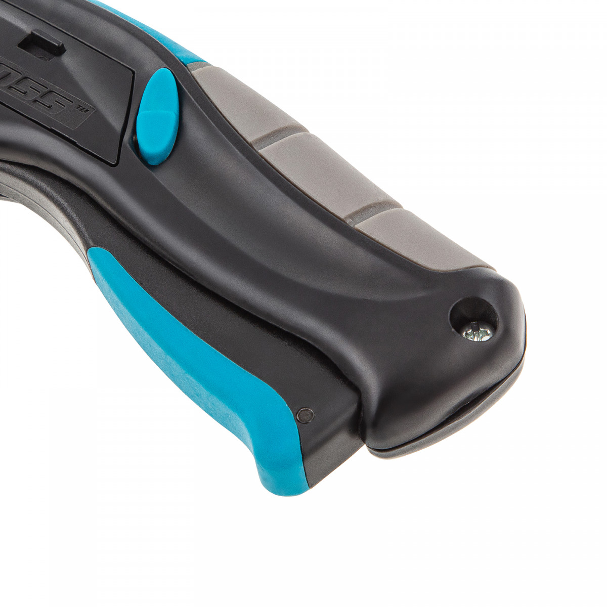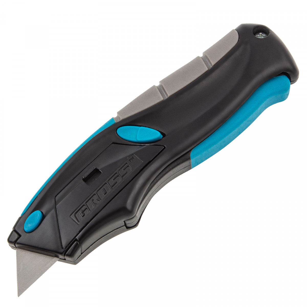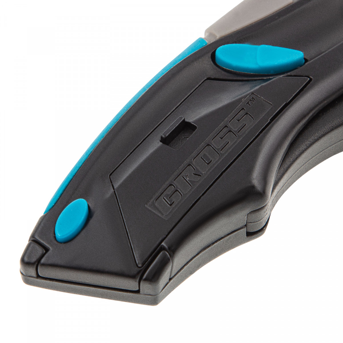 Нож ремонтно-монтажный, трехкомпонентная рукоятка, автовыброс, возврат лезвия, пистолетного типа, 170 мм, 5 запасных лезвий Gross