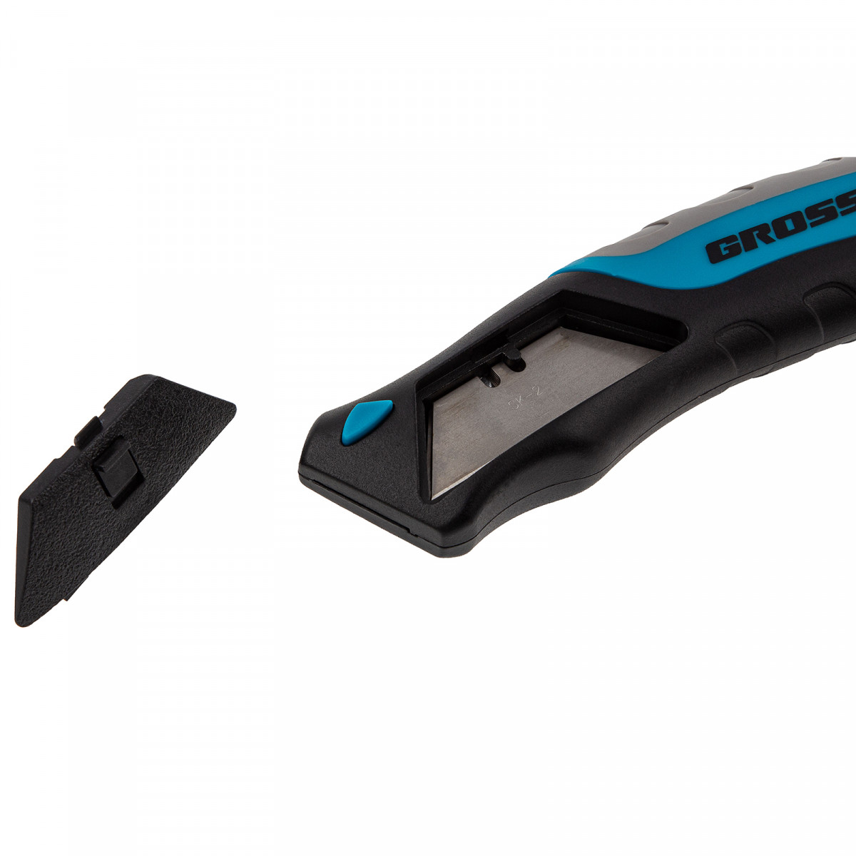 Нож ремонтно-монтажный, трехкомпонентная рукоятка, кнопочный автовыброс, возврат лезвия, 175 мм, 5 запасных лезвий Gross