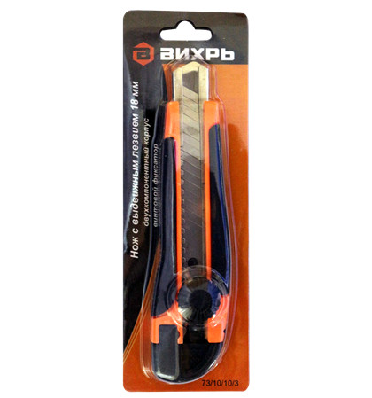 Нож с выдвижным лезвием 18 мм, двухкомпонентный корпус, винтовой фиксатор Вихрь