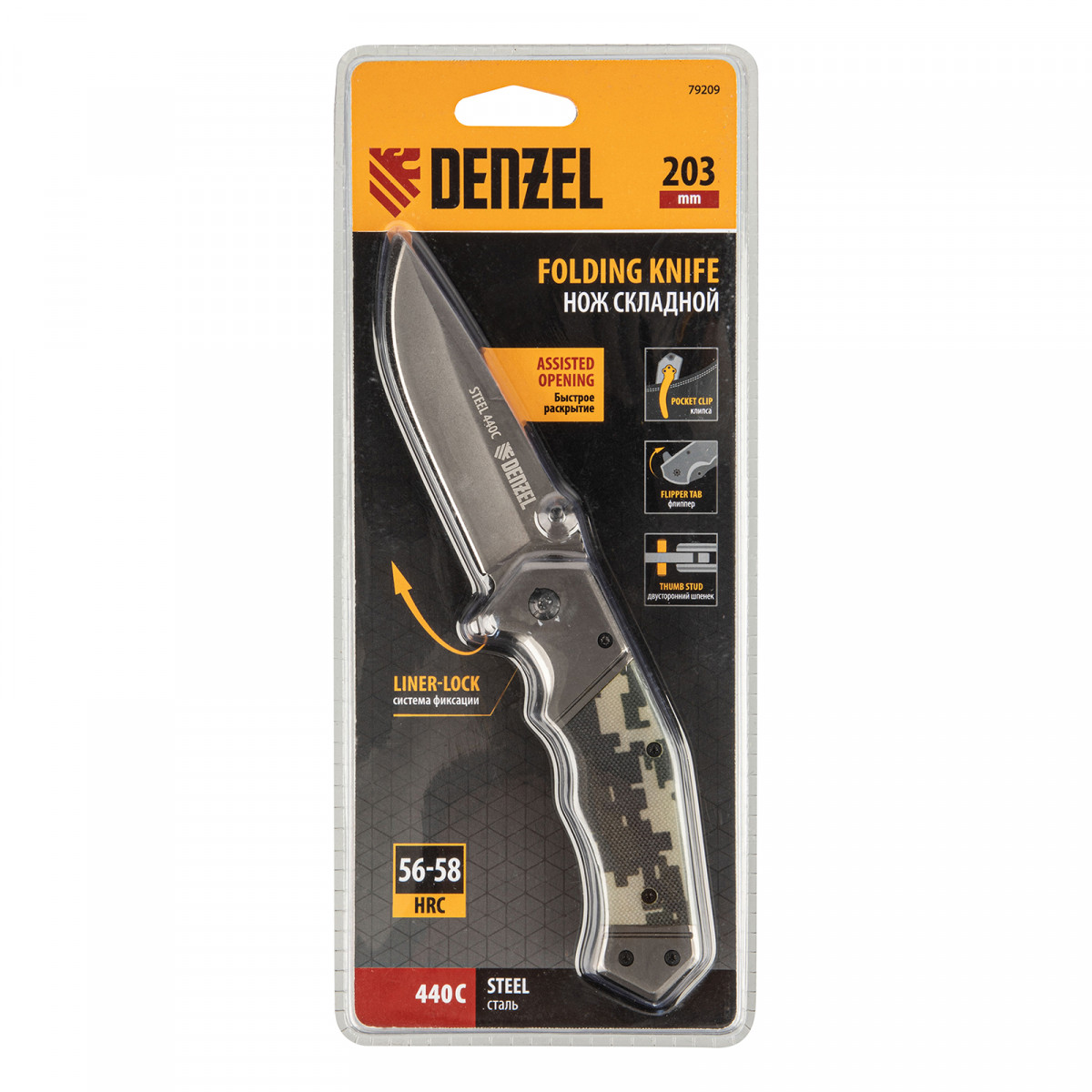 Нож складной, многоцелевой, системы Liner-Lock, с накладкой G10 на эргономичной рукоятке Denzel