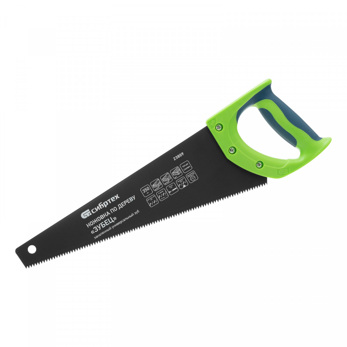 Ножовка по дереву "Зубец", 350 мм, 7-8 TPI, каленый зуб 2D, защитное покрытие, двухкомпонентная рукоятка Сибртех