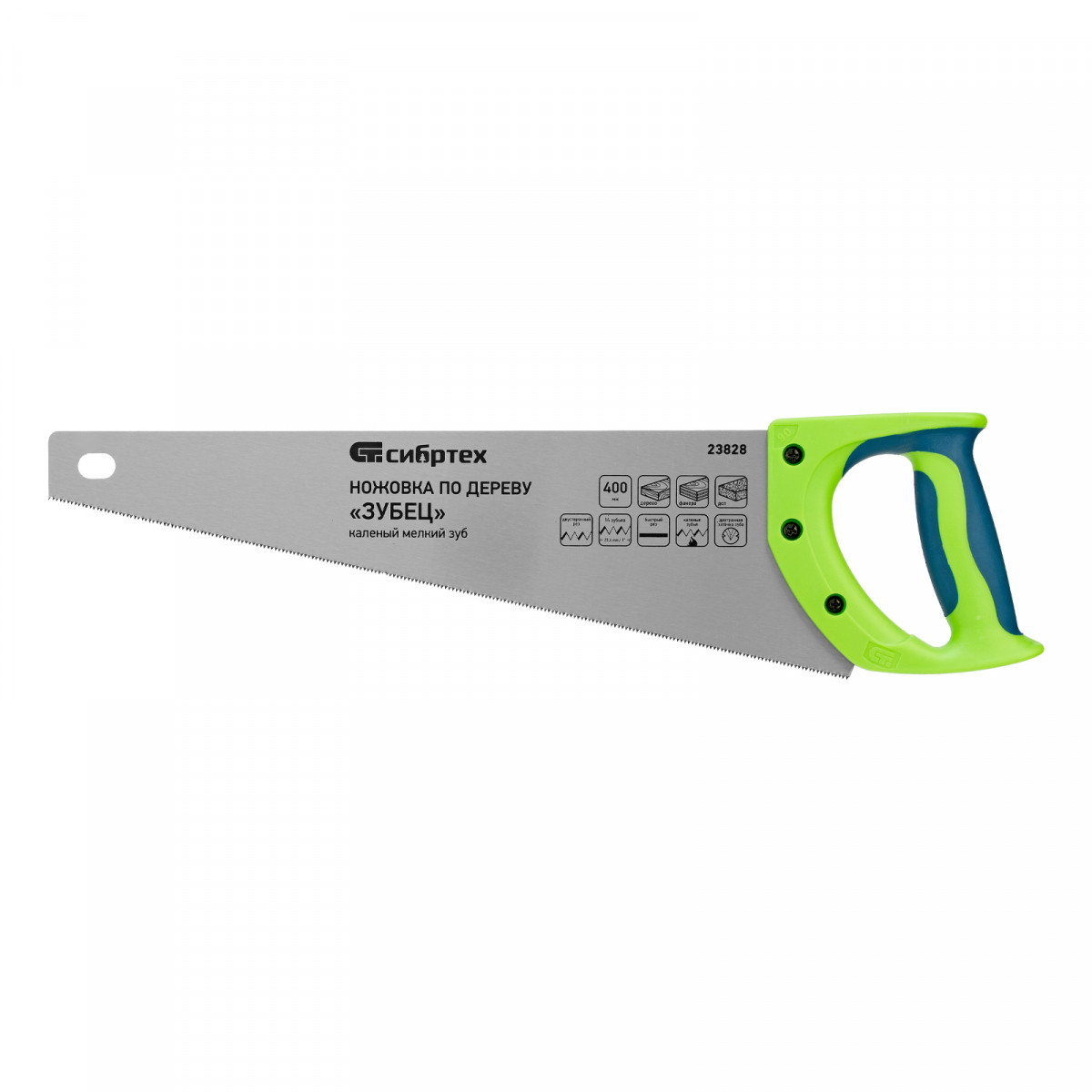 Ножовка по дереву Сибртех «Зубец» 23828 с полотном длиной 400 мм, калеными зубьями с 2D-заточкой и шагом 14 TPI, двухкомпонентной рукояткой, предназначена для точных пильных работ по древесине, фанере и ДСП. Подходит для двустороннего реза. Режущая часть с мелкими зубьями в количестве 14 на дюйм выполняет аккуратный и чистый распил. При необходимости кромку ножовки можно заточить. Инструмент будет полезен в столярной мастерской, а также пригодится в быту.