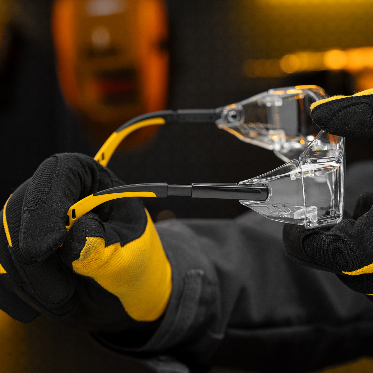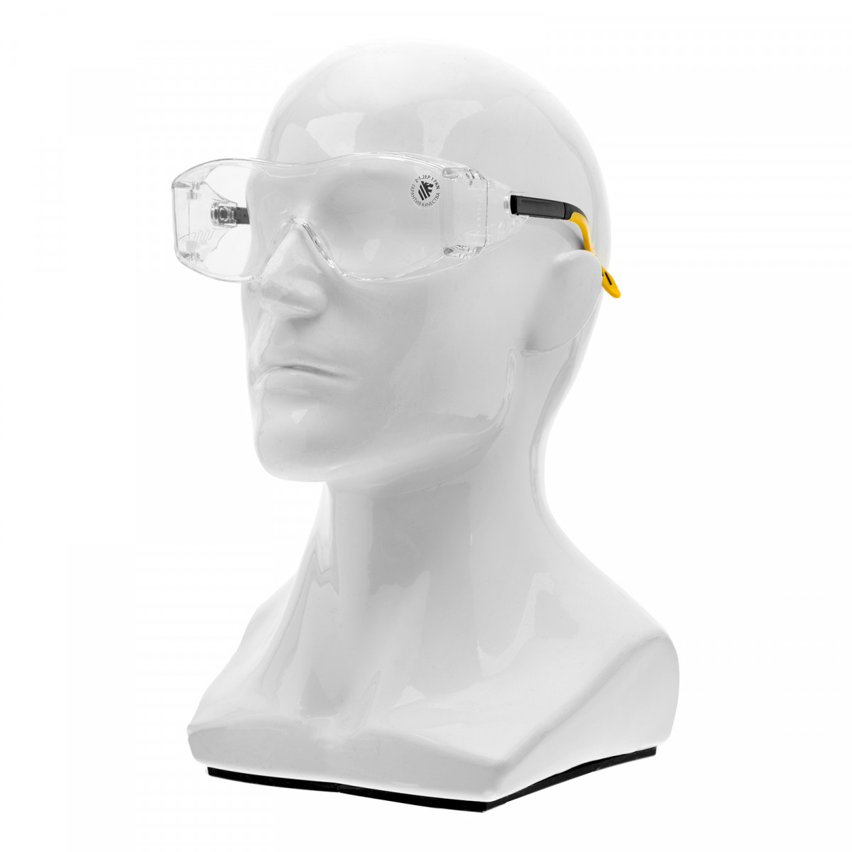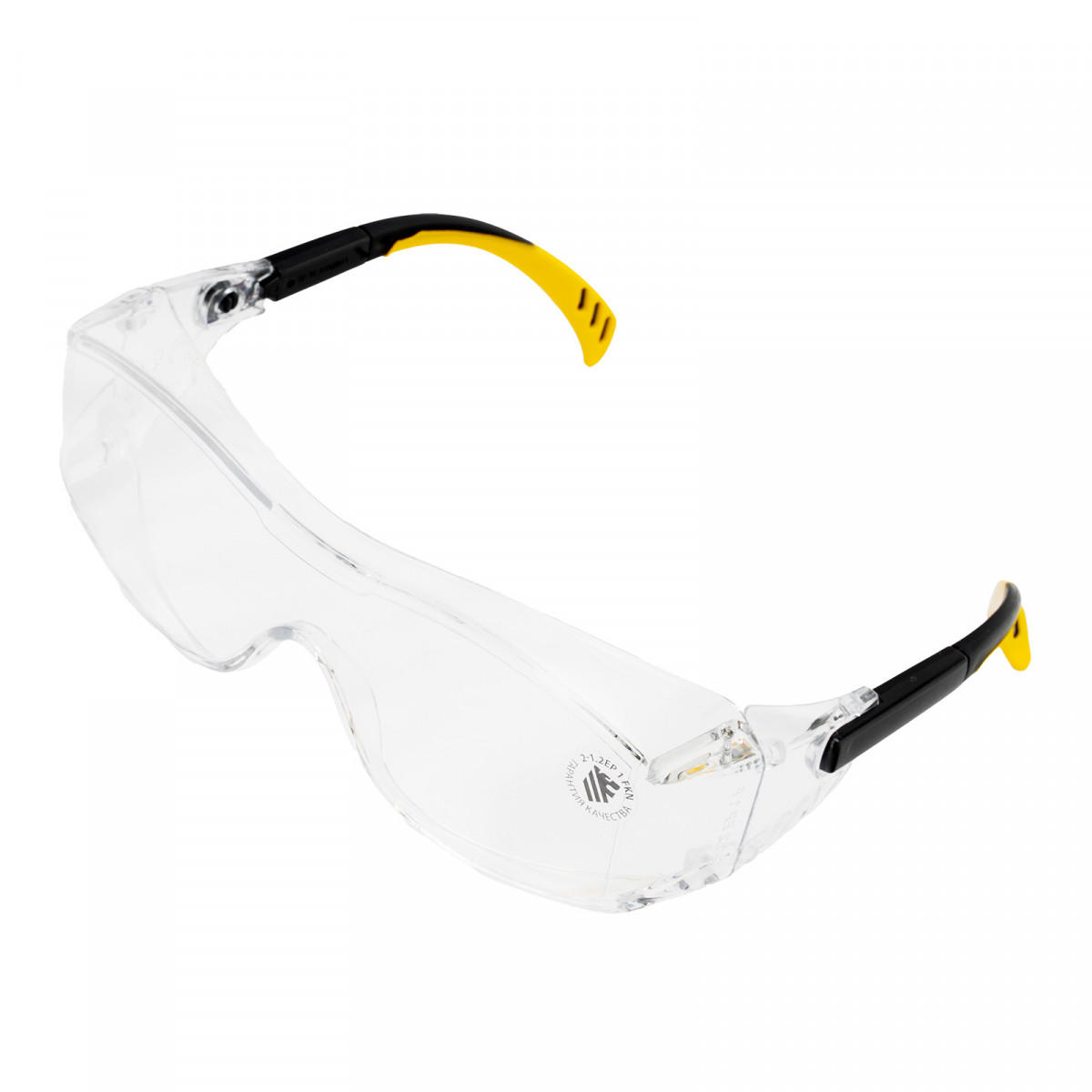 • Продуманная конструкция — особая форма линз обеспечивает боковую и надбровную защиту, а также позволяет носить защитные очки вместе с коррригирующими.