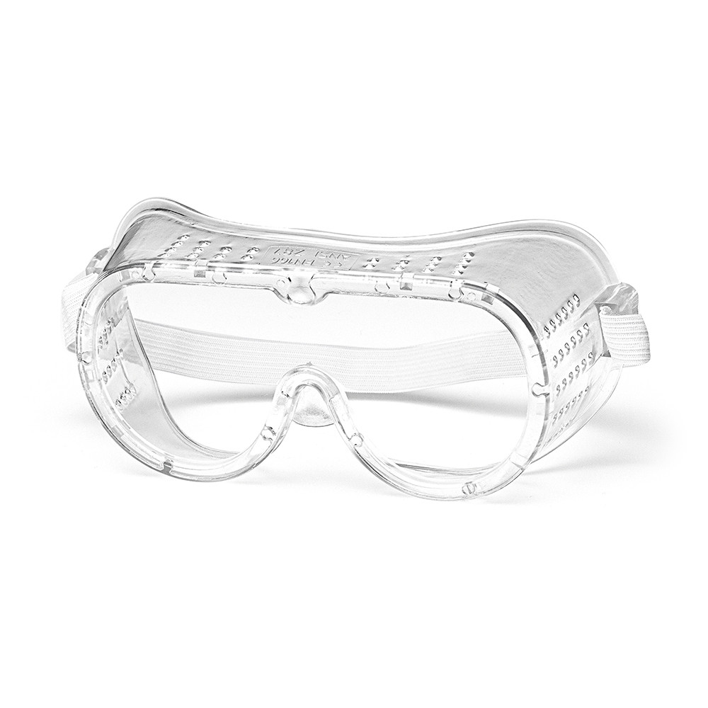 Закрытые очки с прямой вентиляцией в мягком корпусе из ПВХ и регулируемой наголовной лентой с защитным стеклом из бесцветного поликарбоната. Защита от механического повреждения летящими частицами со среднеэнергетическим ударом, УФ-излучения. Первый оптический класс. Покрытие от запотевания.