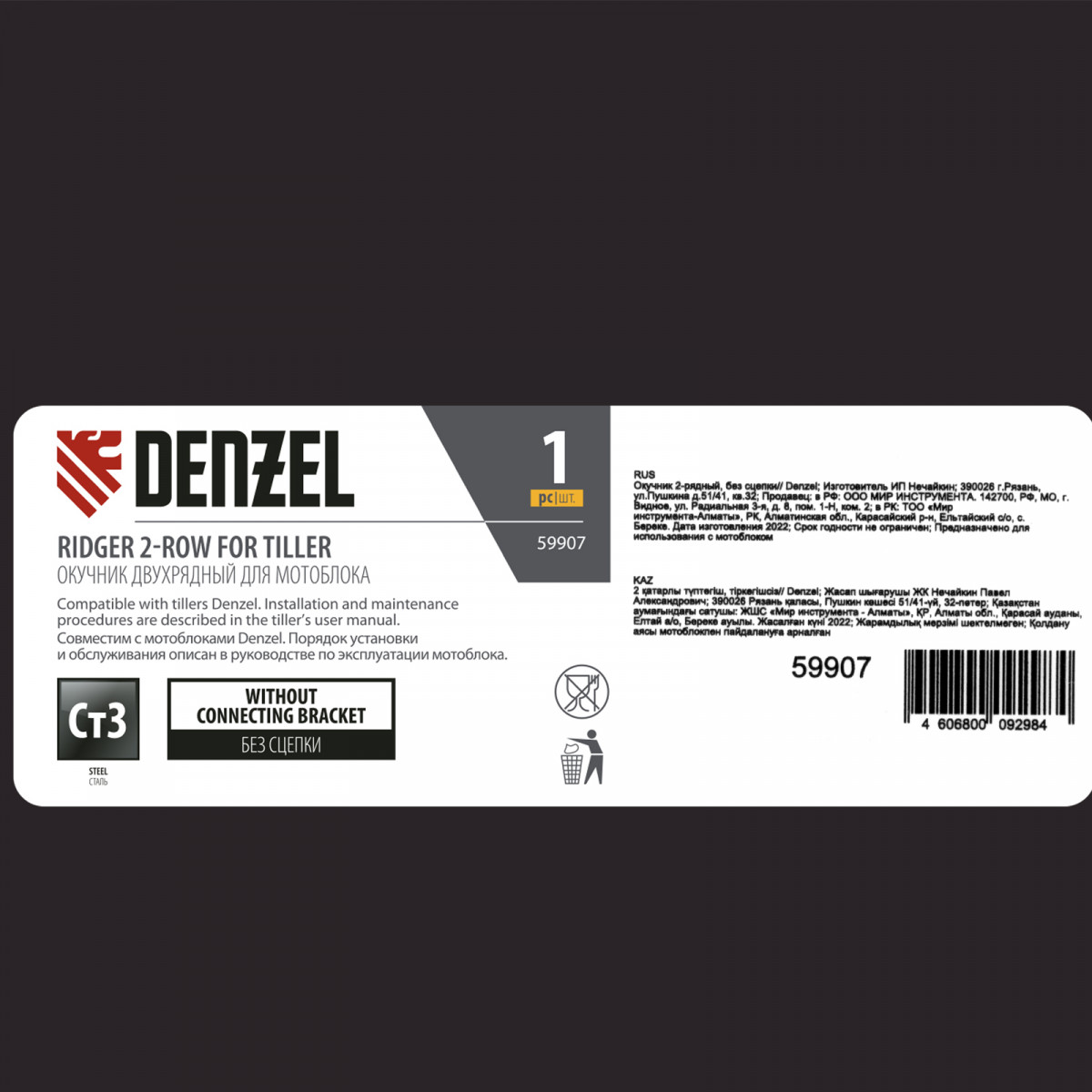 Окучник 2-рядный, без сцепки Denzel
