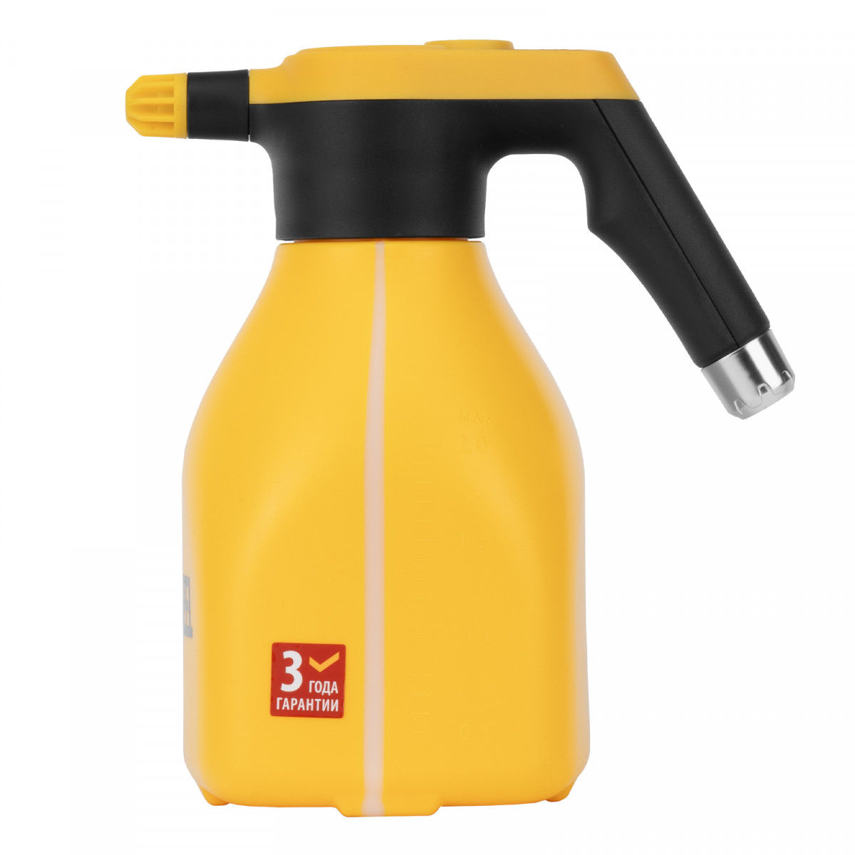 Аккумуляторный опрыскиватель Denzel D-2LI 64791 с баком объемом 2 л и Li-Ion батареей на 3,7 В, емкостью 2,2 А·ч, предназначен для ухода за растениями — внесения жидких удобрений, распыления инсектицидных средств. Также может использоваться для мытья окон, фасадов, дорожек, садового инвентаря. Размер и форма факела регулируются, максимальная дальность распыления составляет 1 м, что позволяет обрабатывать участки различной площади и удаленные места. Опрыскиватель экономит силы и время пользователя, будет полезен в быту и на производстве.