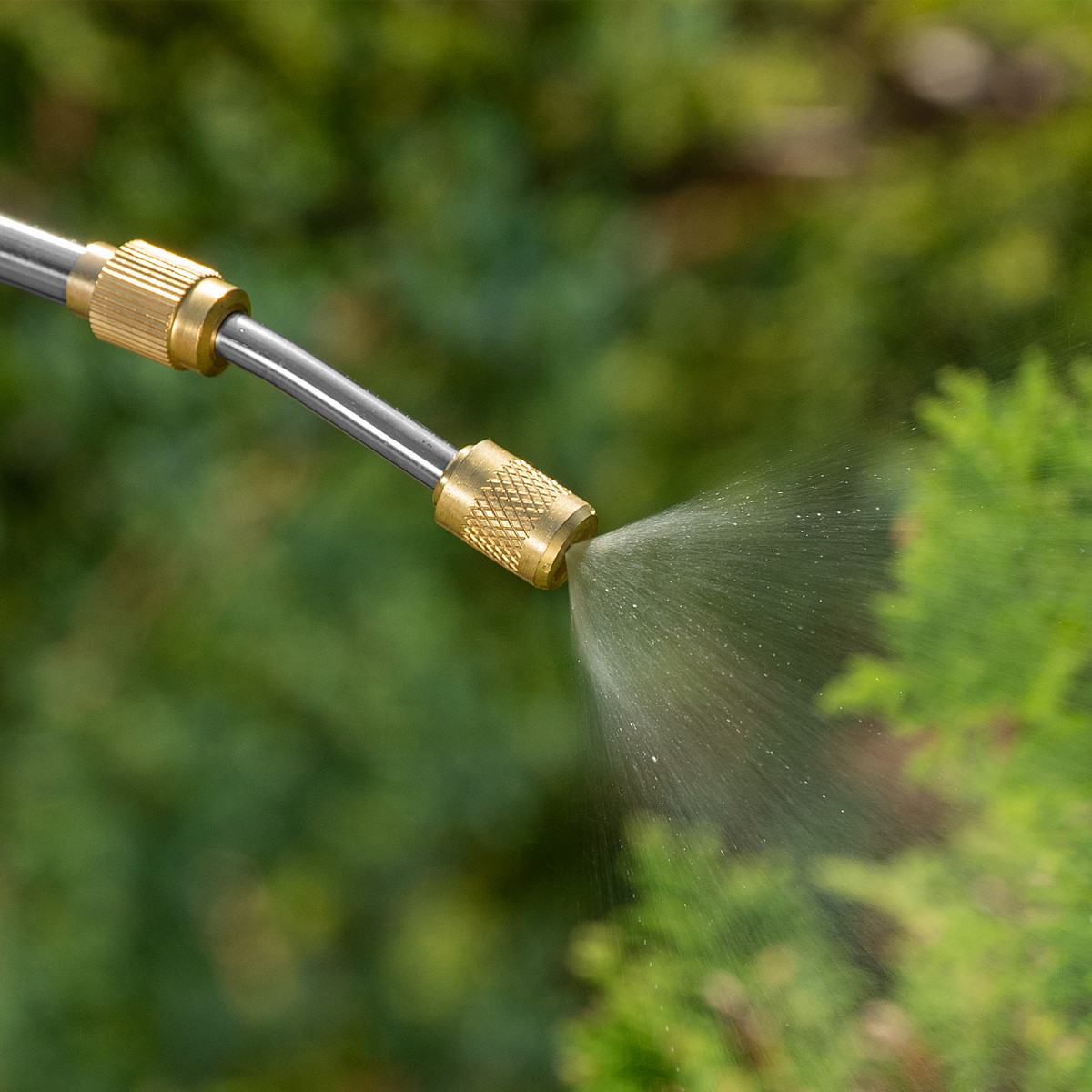 • Прочная и долговечная конструкция — корпус бака с ребрами жесткости устойчив к деформации, латунная насадка распылителя не подвержена коррозии.
