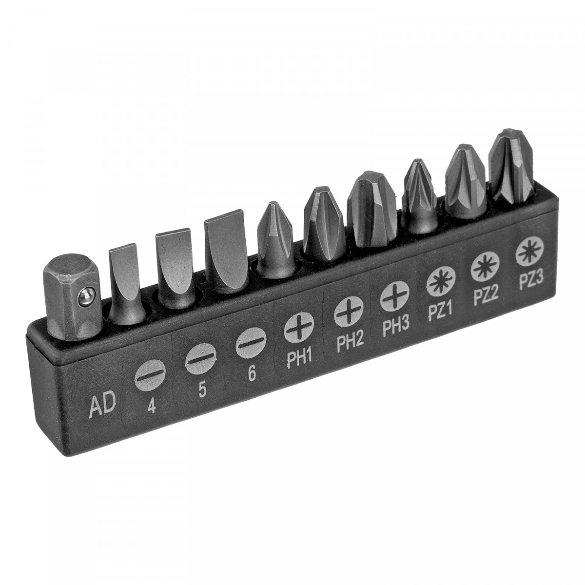 • Быстрый поиск нужной насадки — для бит предусмотрена плашка-держатель с маркировкой размеров и типов шлицев.