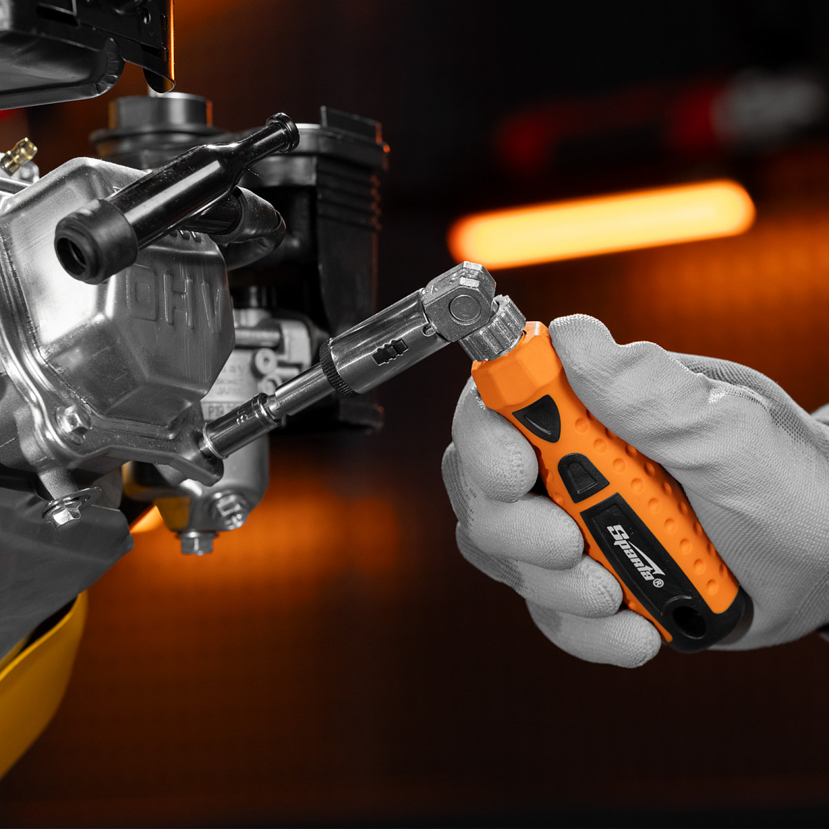 • Поворотная голова с пятипозиционной фиксацией обеспечивает возможность работы в труднодоступных местах и ограниченном пространстве.