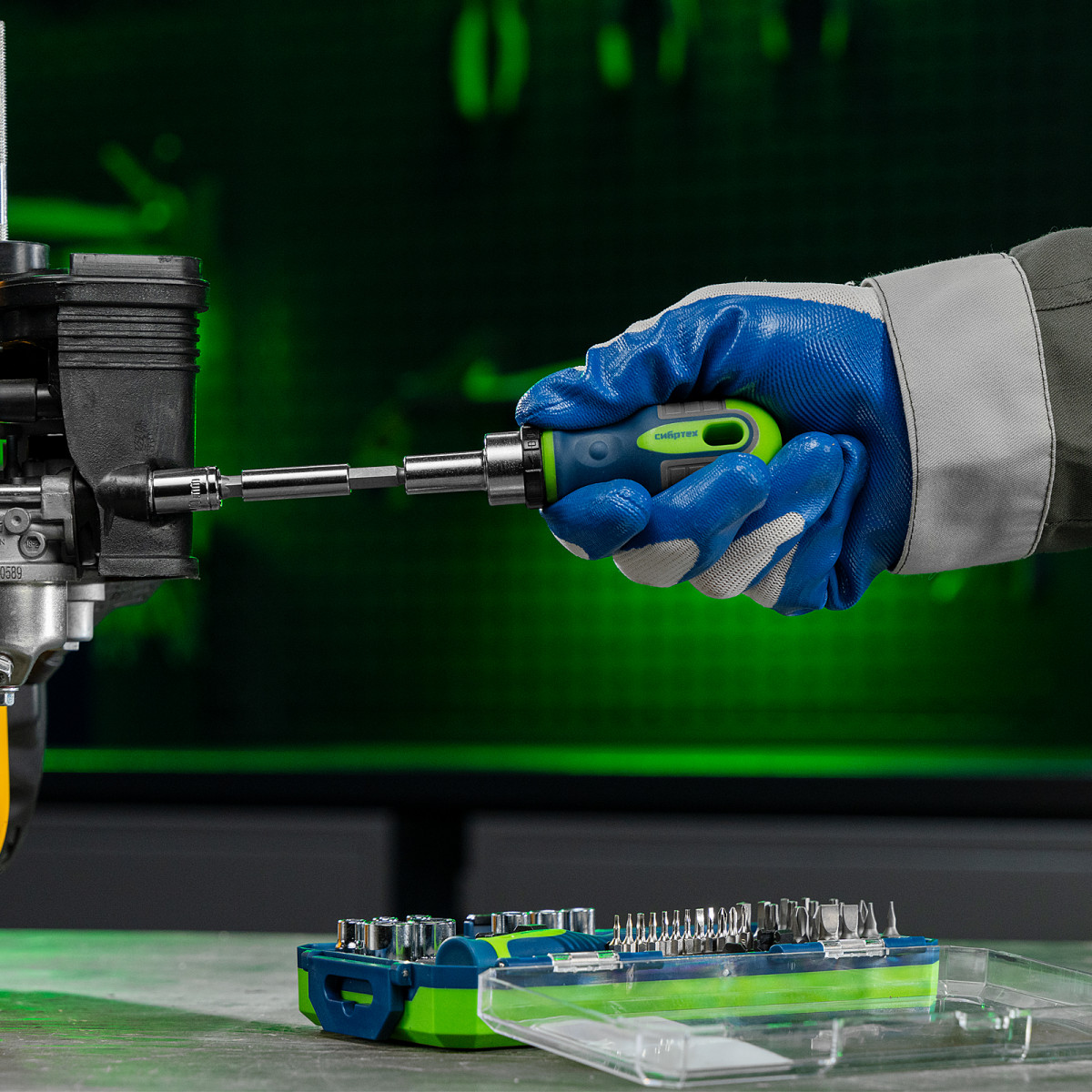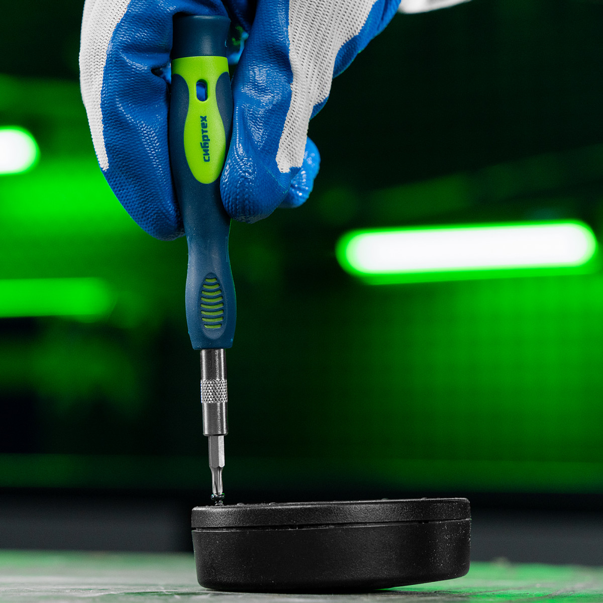 • Прочность и износостойкость — биты, торцевые головки и стержни отверток изготовлены из высококачественной хромованадиевой стали.