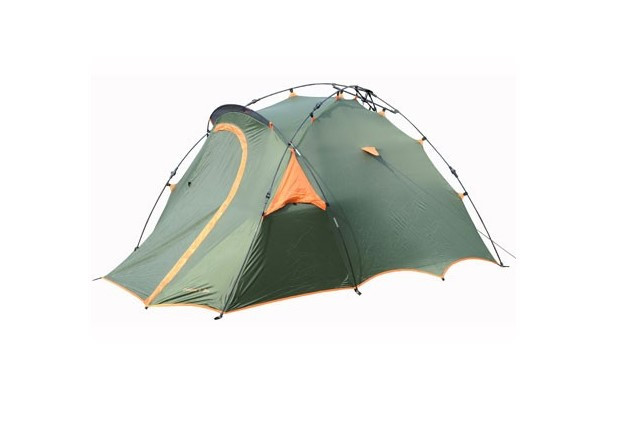 Двухместная палатка ассиметричной конструкции с объёмным тамбуром.