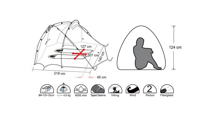 Наряду с этим данная модель двухслойной палатки имеет высокий потолок, свод которого формируется второй дугой, входящей в комплект.
