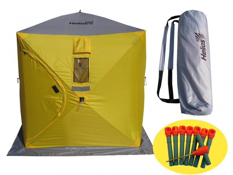 Палатка зимняя HELIOS Куб 1,5*1,5 желтый/серый