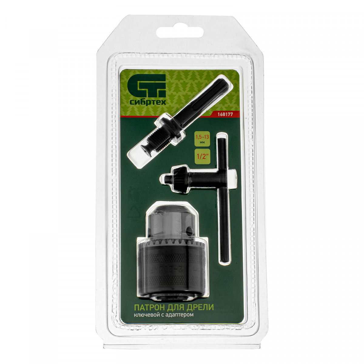 Патрон для дрели ключевой, 1.5-13 мм, 1/2, адаптер SDS Plus Сибртех