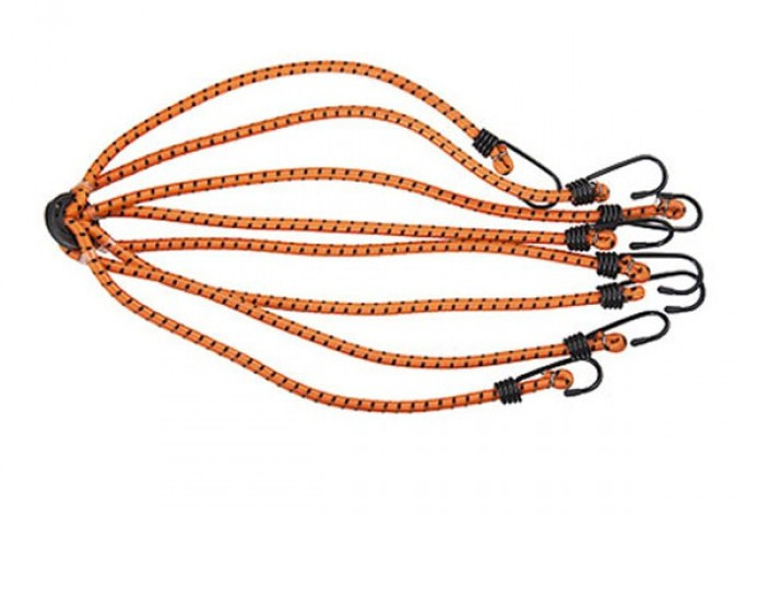Паук багажный имеет надежную и удобную конструкцию: четыре резиновых жгута, перехваченных в середине кольцом, оснащены на концах крюками, надежно зацепляющимися за багажник. Применяется для закрепления предметов в открытых багажниках, монтируемых на крышах легковых автомобилей.