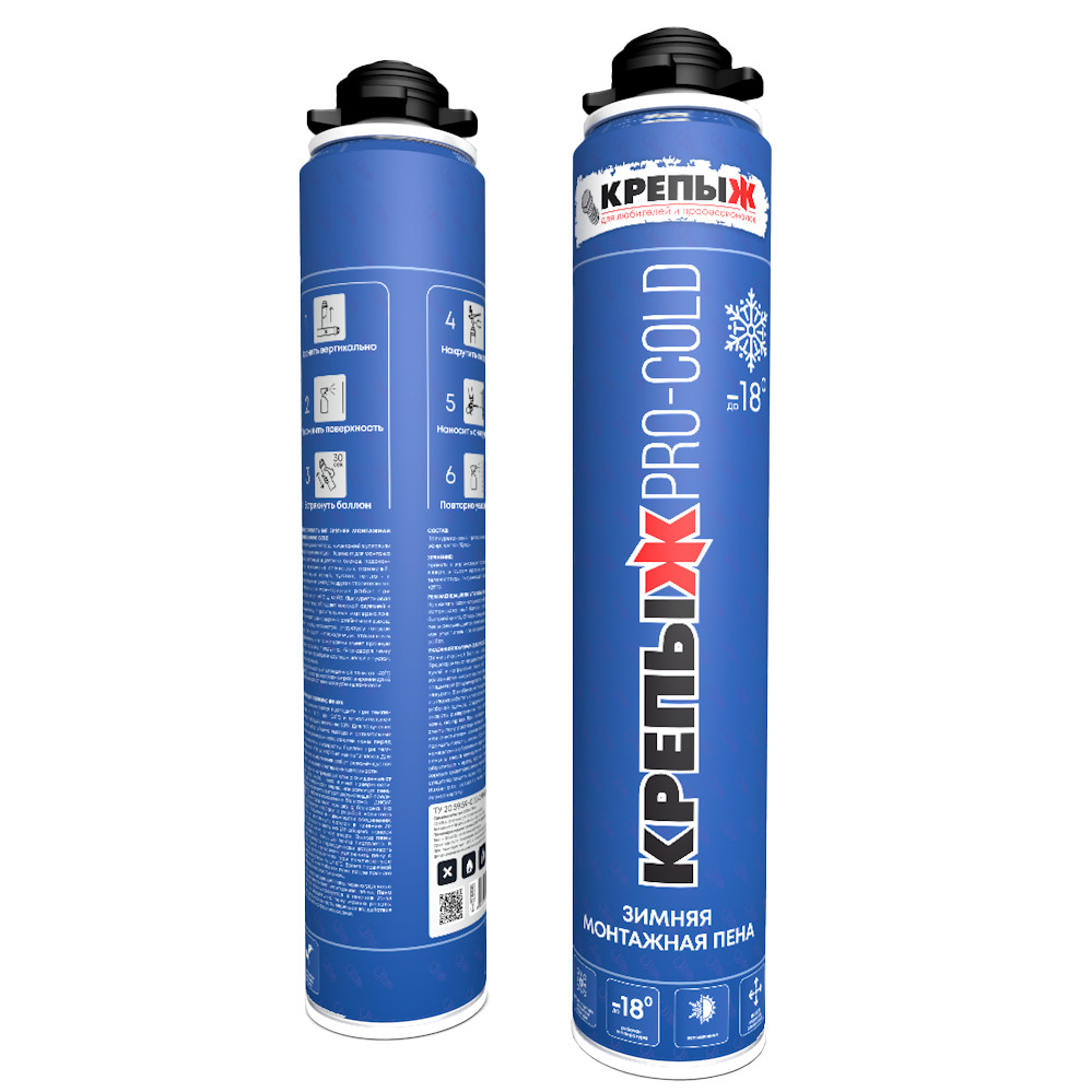 Профессиональная зимняя монтажная пена КРЕПЫЖ PRO-COLD премиум качества для монтажей в условиях холодного времени года. Подходит для монтажа оконных витражей и дверных блоков, подоконников, крепления стеновых панелей, герметизации щелей , пустот, тепло - и шумоизоляции, а также для других строительных , отделочных и монтажных работ при температуре от -18С до +30 град.С. Полиуретановая монтажная пена обладает высокой адгезией к большинству строительных материалов. Обеспечивает равномерный, стабильный выход, мелко- и среднепористую структуру готовой пены. Обладает необходимым вторичным расширением, и в то же время имеет прочную основу готового продукта, благодаря чему подходит для обработки крупных щелей и пустот, оконных проёмов. Выдерживает стабильные высокие нагрузки. Термоустойчивость отвержденной пены от -40°C до +90°C
