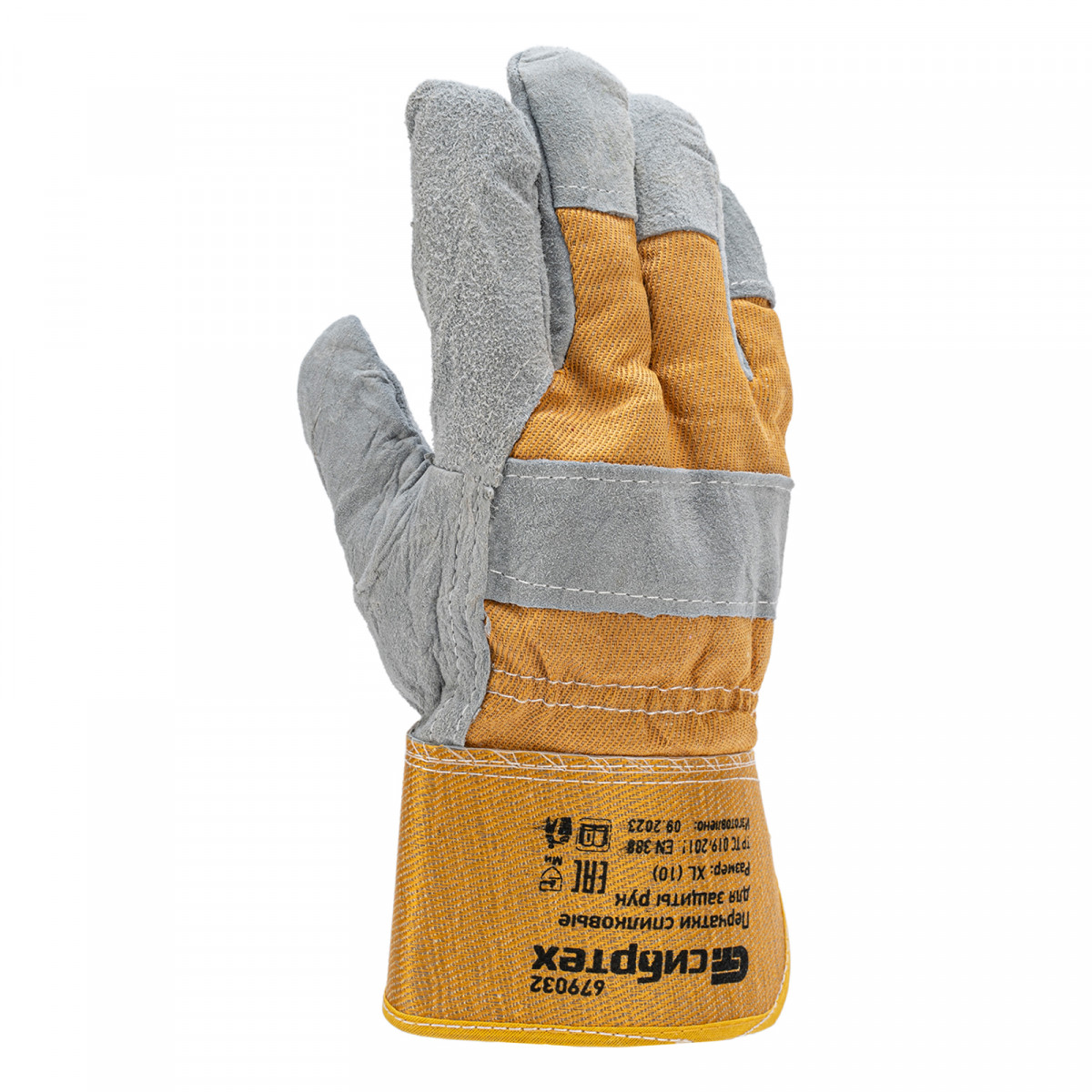 Перчатки спилковые комбинированные, усиленные, утолщенные, размер XL, Сибртех