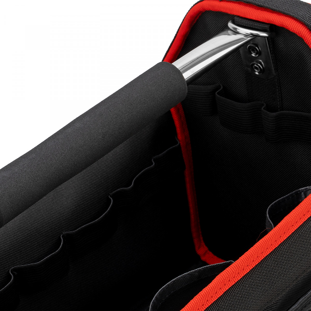 Каркасная переноска Matrix 90257 размером 415 х 230 х 260 мм удобна для перемещения и хранения инструментов. Имеет прочный каркас и весит 1,35 кг, ее легко переносить благодаря регулируемому плечевому ремню. В удобных карманах можно расположить все необходимые инструменты. Переноска пригодится дома, в гараже или в поездке.