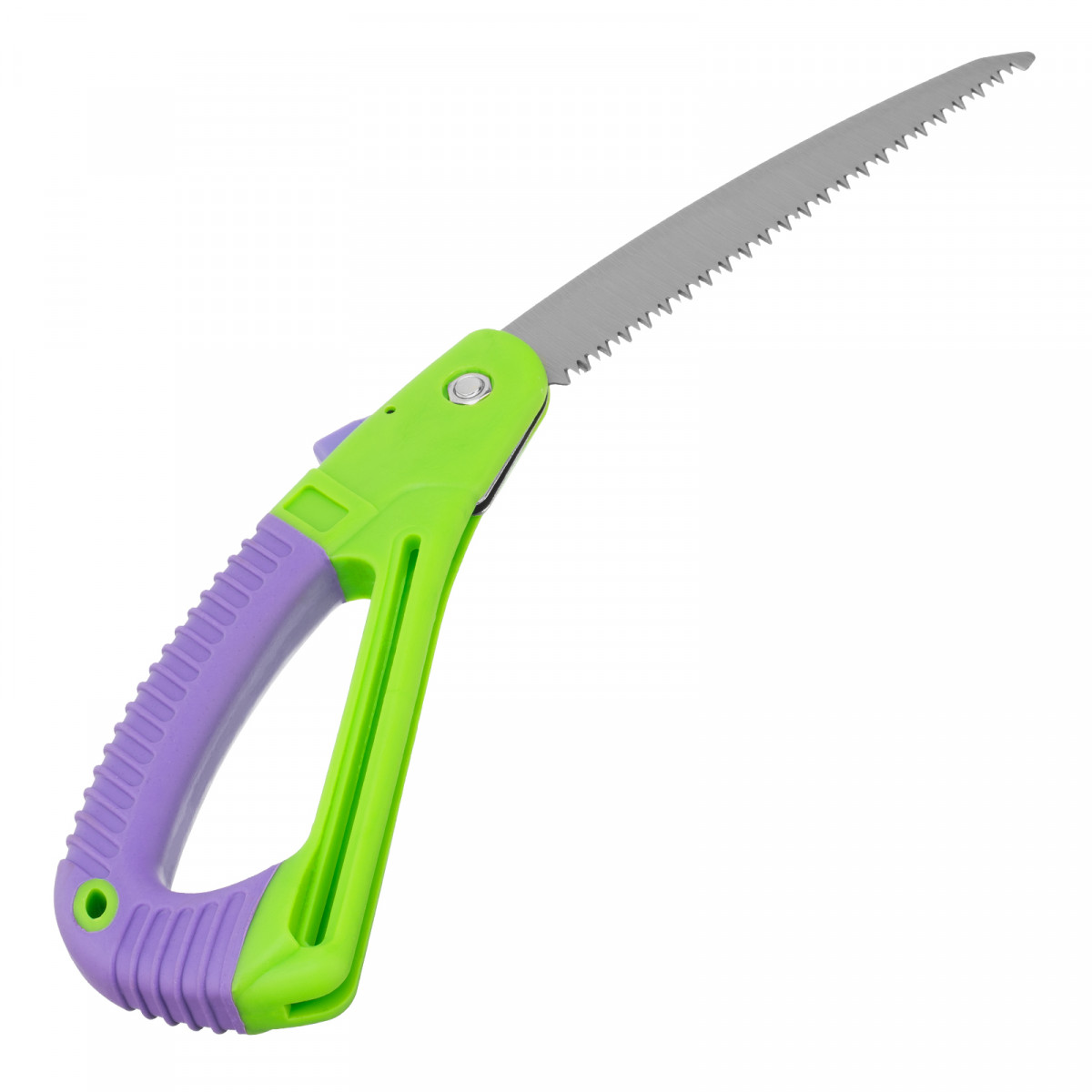 - Надежная конструкция — кнопочный фиксатор удерживает полотно в рабочем или сложенном положении.