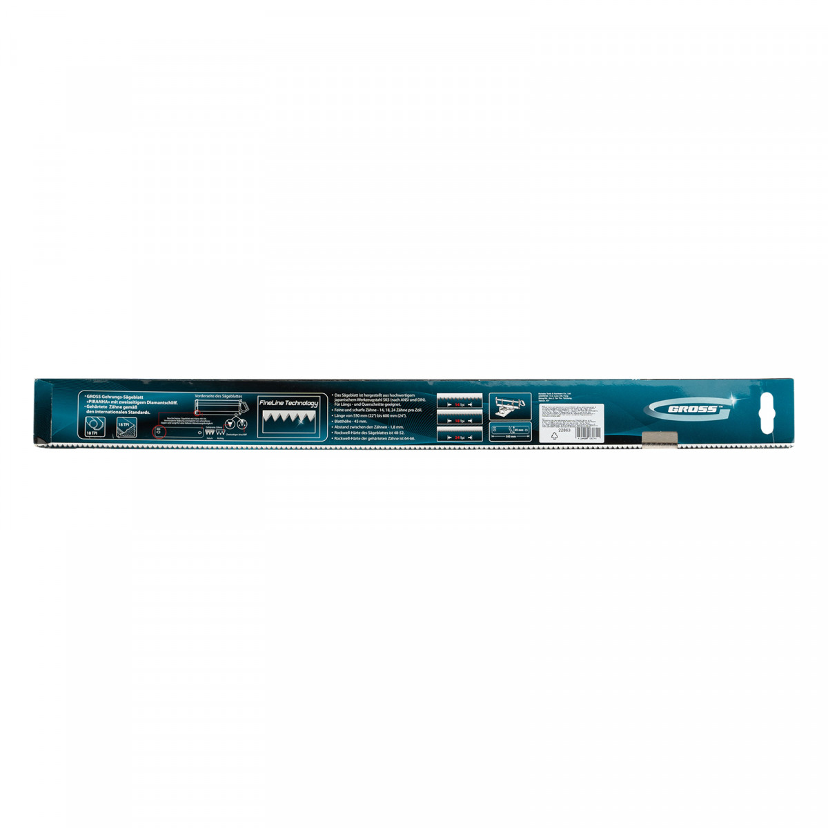 Пильное полотно Gross «PIRANHA» 22863 длиной 550 мм, с каленым зубом с 2D-заточкой, 18 TPI — режущий элемент для прецизионного стусла, применяемый для распила под углом заготовок из дерева, мягкого металла и пластика. Мелкие зубья с шагом 18 TPI позволяют получить точный и чистый рез. Полотно используется для пиления плинтусов, реек, дверных наличников и других деталей.