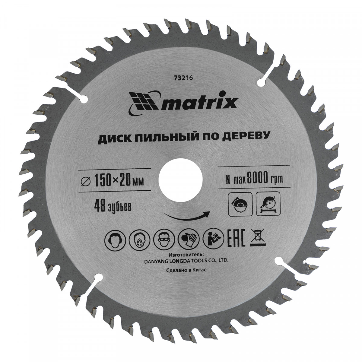 Пильный диск по дереву, 150 х 20 мм, 48 зубьев, кольцо 16/20 Matrix Professional