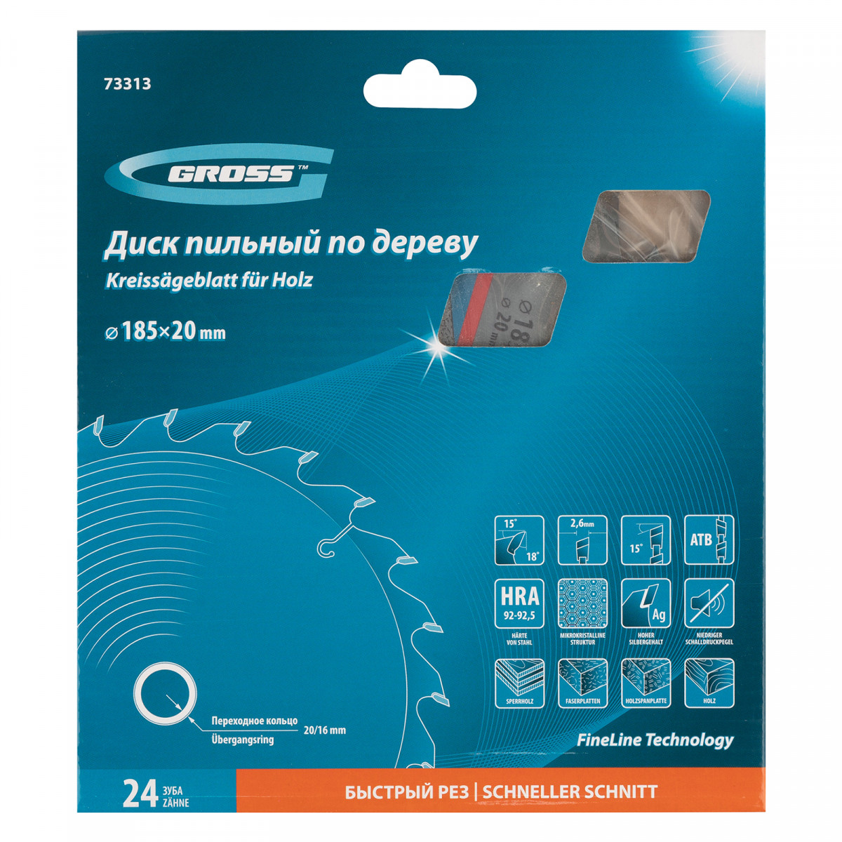 Пильный диск по дереву 185 x 20/16 x 24Т Gross