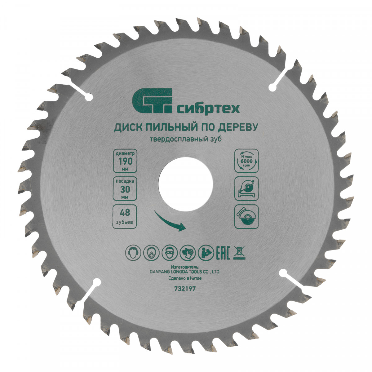 Пильный диск по дереву, 190 х 30 мм, 48 зубьев Сибртех