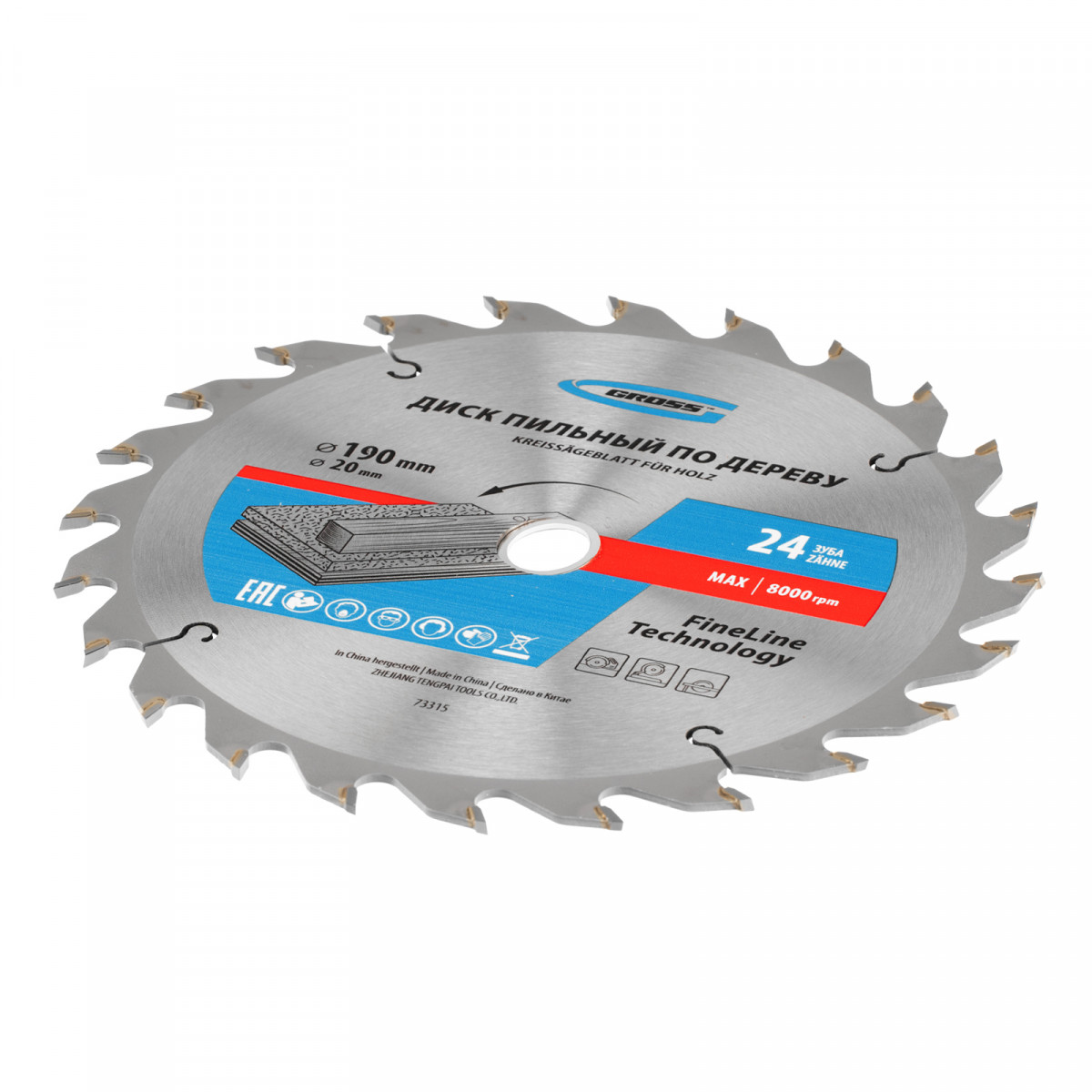 Пильный диск по дереву 190 x 20/16 x 24Т Gross