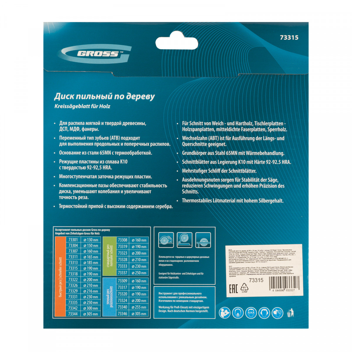 • Высокое качество работ — 24 крупных зуба и режущие кромки, прошедшие многоступенчатую автоматическую заточку, обеспечивают быстрый и точный рез материалов.
