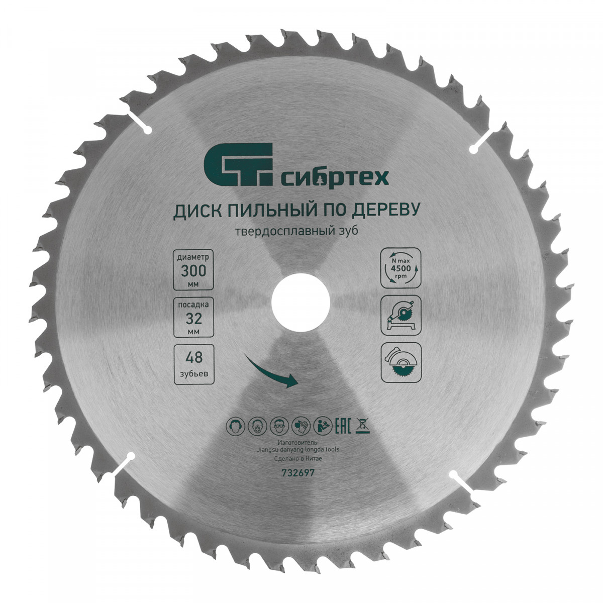 Пильный диск по дереву, 300 х 32 мм, 48 зубьев Сибртех