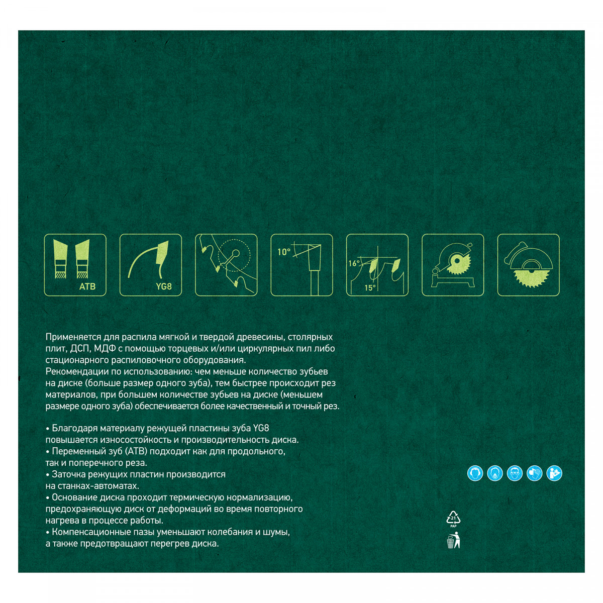 • Стабильно качественный рез — диск пилит быстро и ровно за счет попеременной заточки зубьев, компенсационные пазы защищают диск от деформации в результате нагрева, предотвращая его заклинивание.