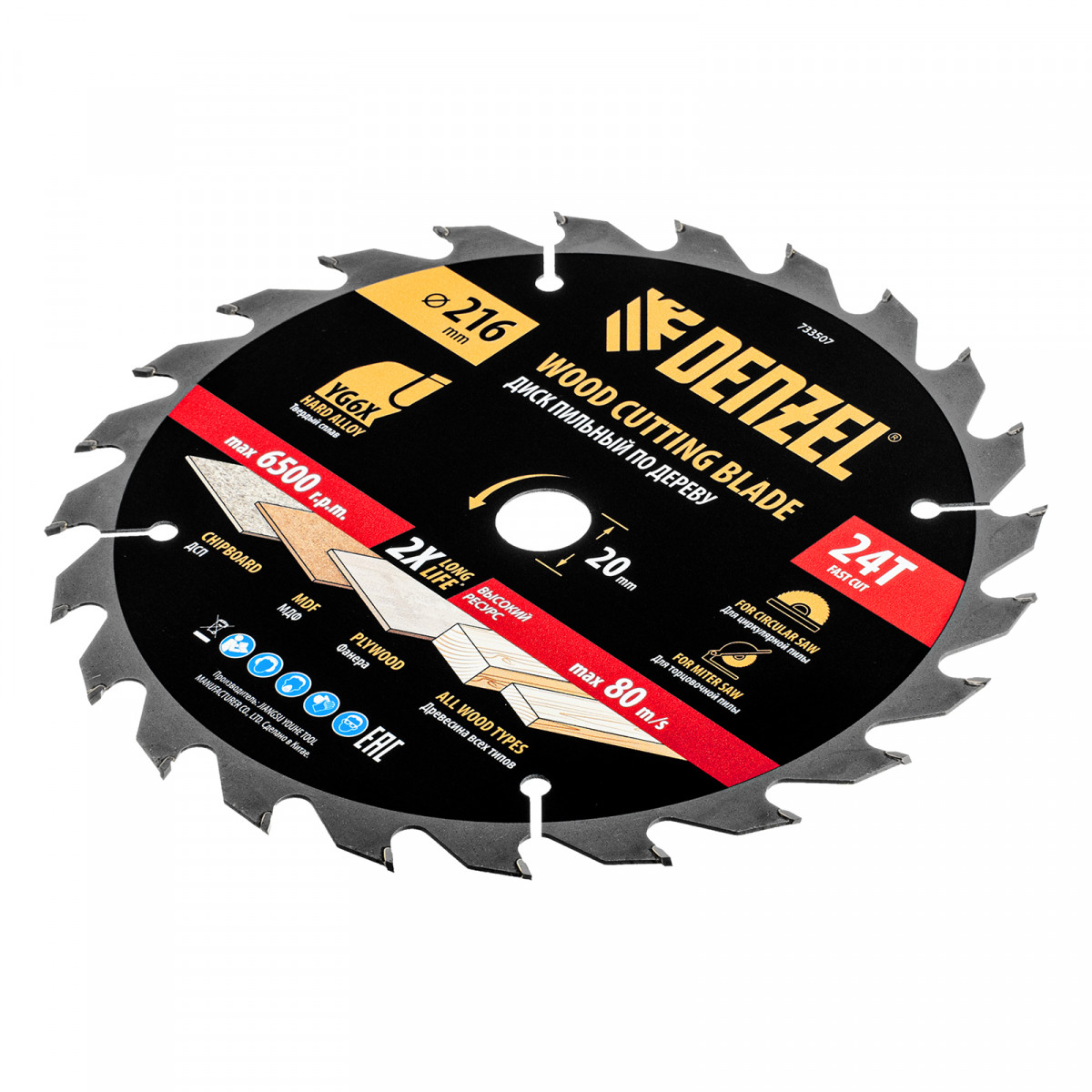 Пильный диск по дереву ф216 х 20 мм, 24 зубьев Denzel