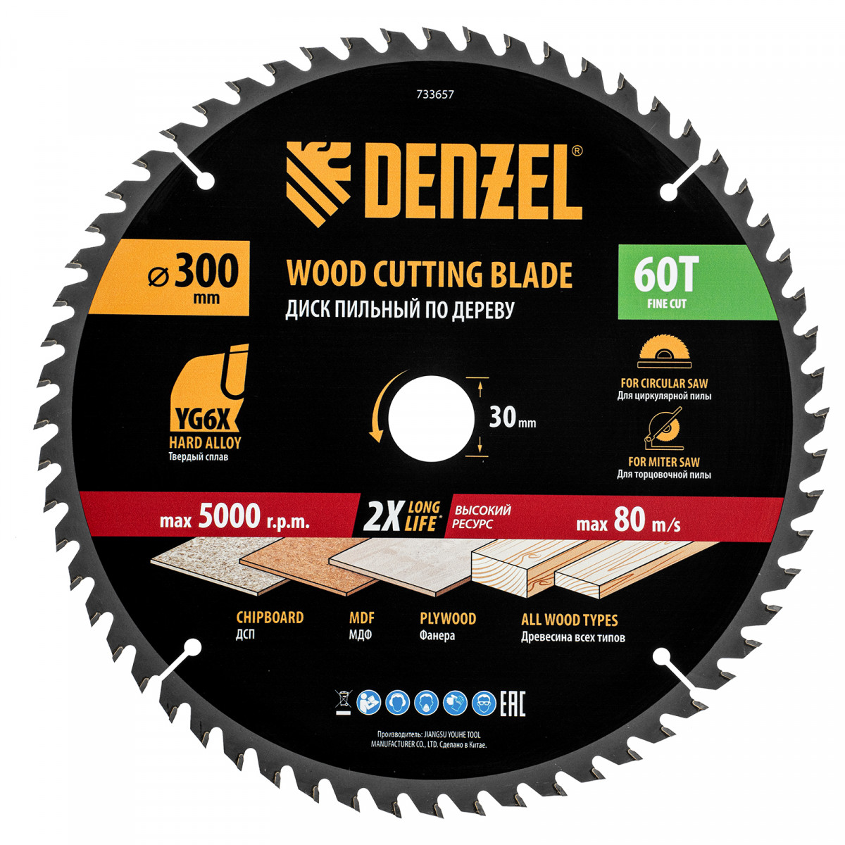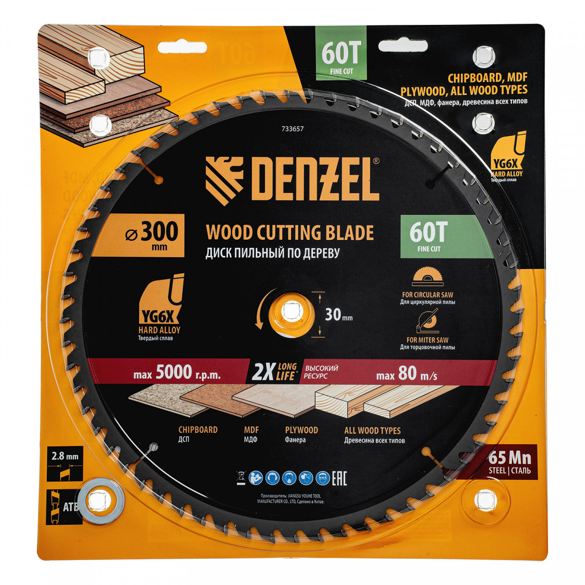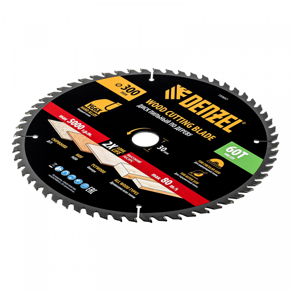 Пильный диск Denzel 733657 диаметром 300 x 30 мм, с 60 зубьями, предназначен для точного продольного и поперечного распила твердой и мягкой древесины, фанеры, МДФ, ДСП. 60 зубьев типа ATB с режущими пластинами оптимальной геометрии обеспечивают чистый рез. Режущие пластины из твердого сплава YG6X сохраняют рабочие свойства при интенсивном использовании. Диск устанавливается на циркулярную, торцовочную пилу или на распиловочный станок. В комплект поставки входит переходное кольцо с 30 на 20 мм, что позволяет изменить посадочный размер и расширяет возможности использования диска.