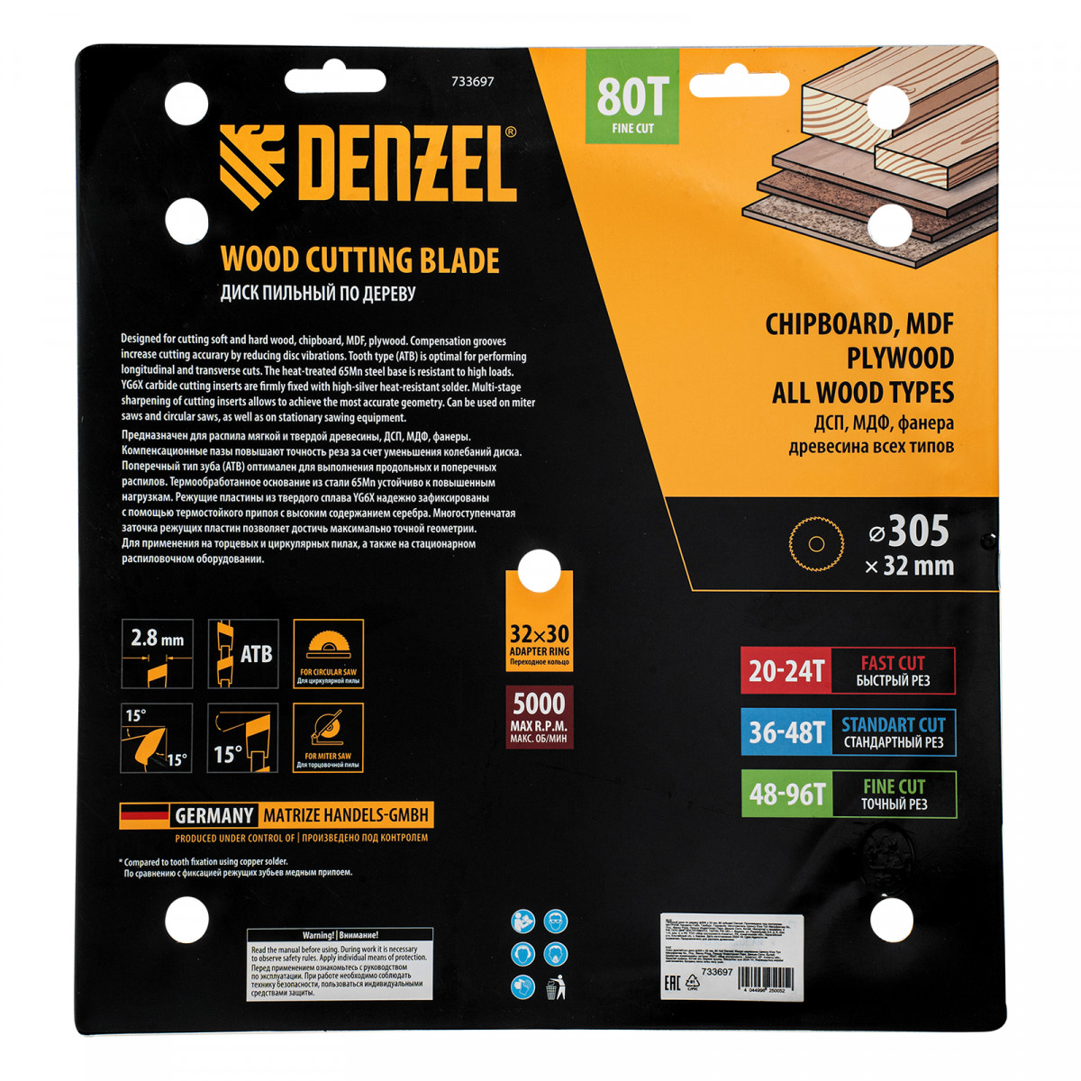 Пильный диск по дереву ф305 х 32 мм, 80 зубьев Denzel