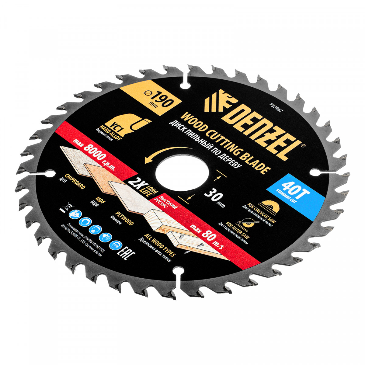 Пильный диск по дереву с гвоздями, ф190 х 30 мм, 40 зубов Denzel