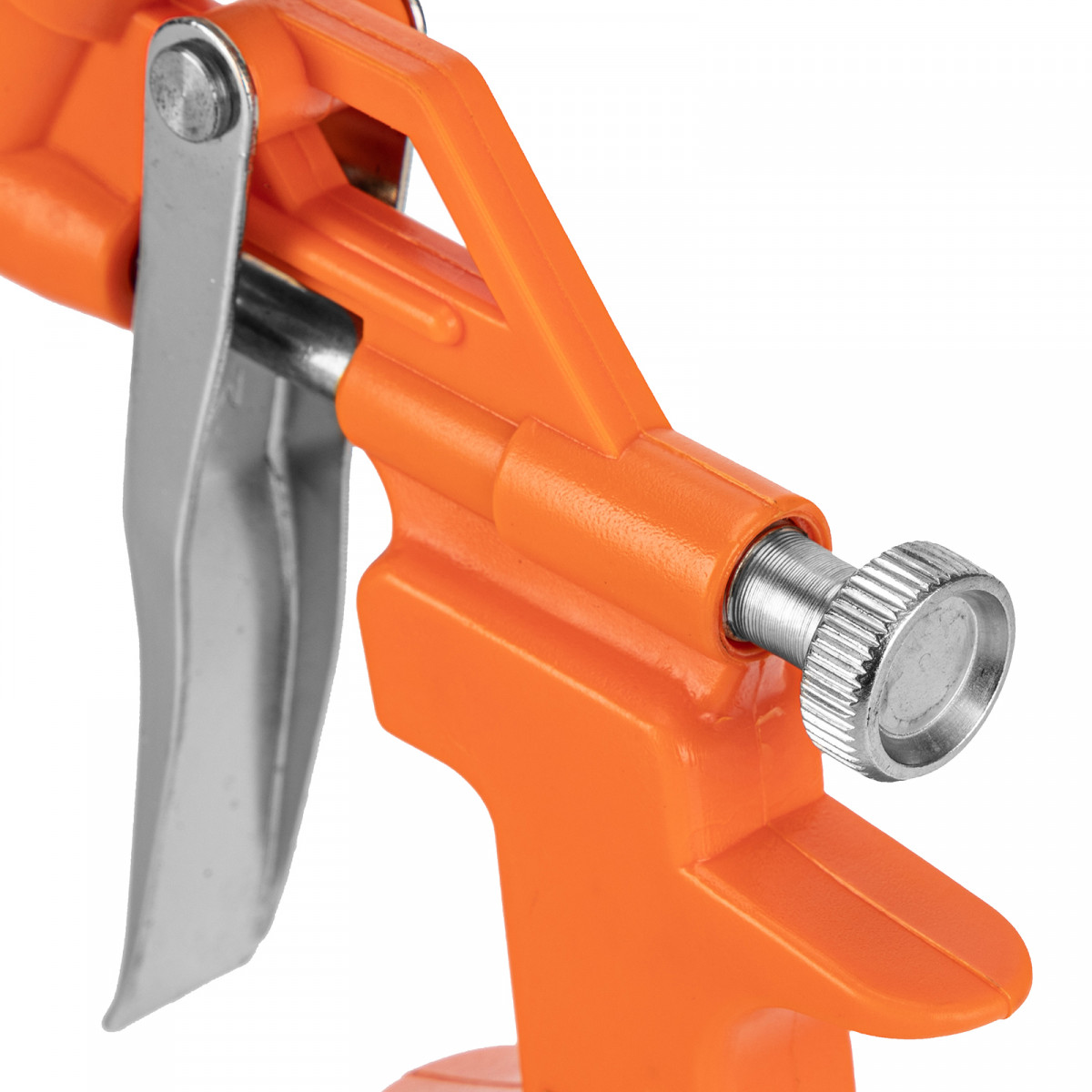 - Плавное дозирование смеси — пистолет оснащен регулировочным винтом трещоточного типа.