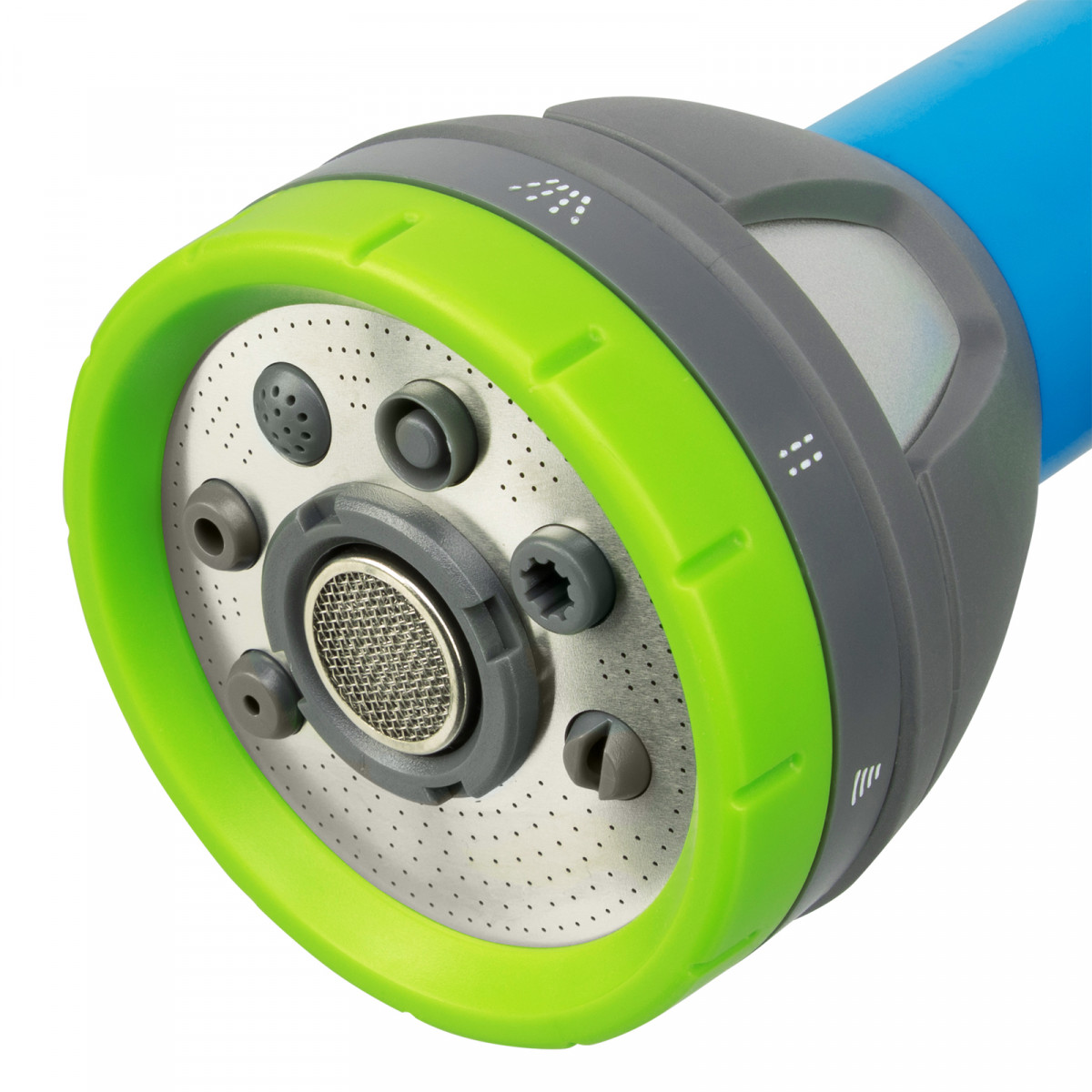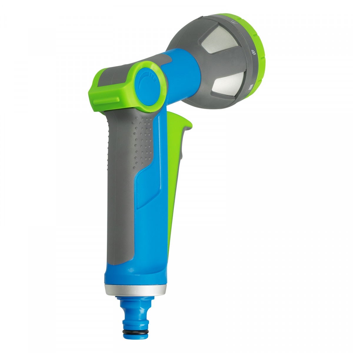 • 8 типов распыления — конусное, вертикальное и горизонтальное, душ, жесткая струя, веер, туман, полный полив.