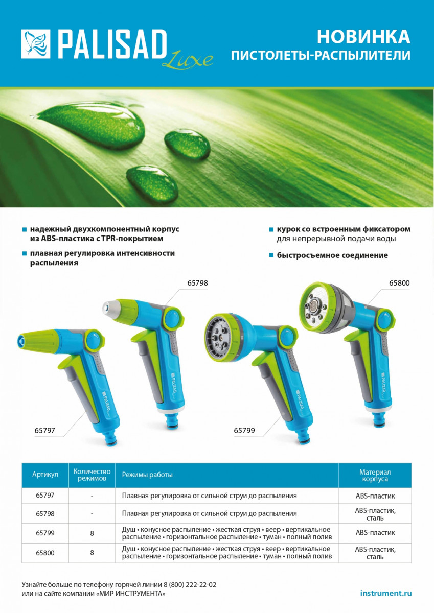 • Универсальность — распылитель можно использовать с любой системой полива ТМ Palisad.