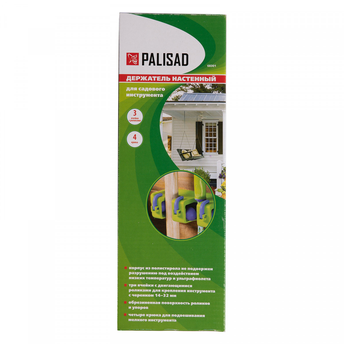 Пластиковый настенный держатель для садово - огородного инструмента, 3 ячейки, 4 крюка, Palisad