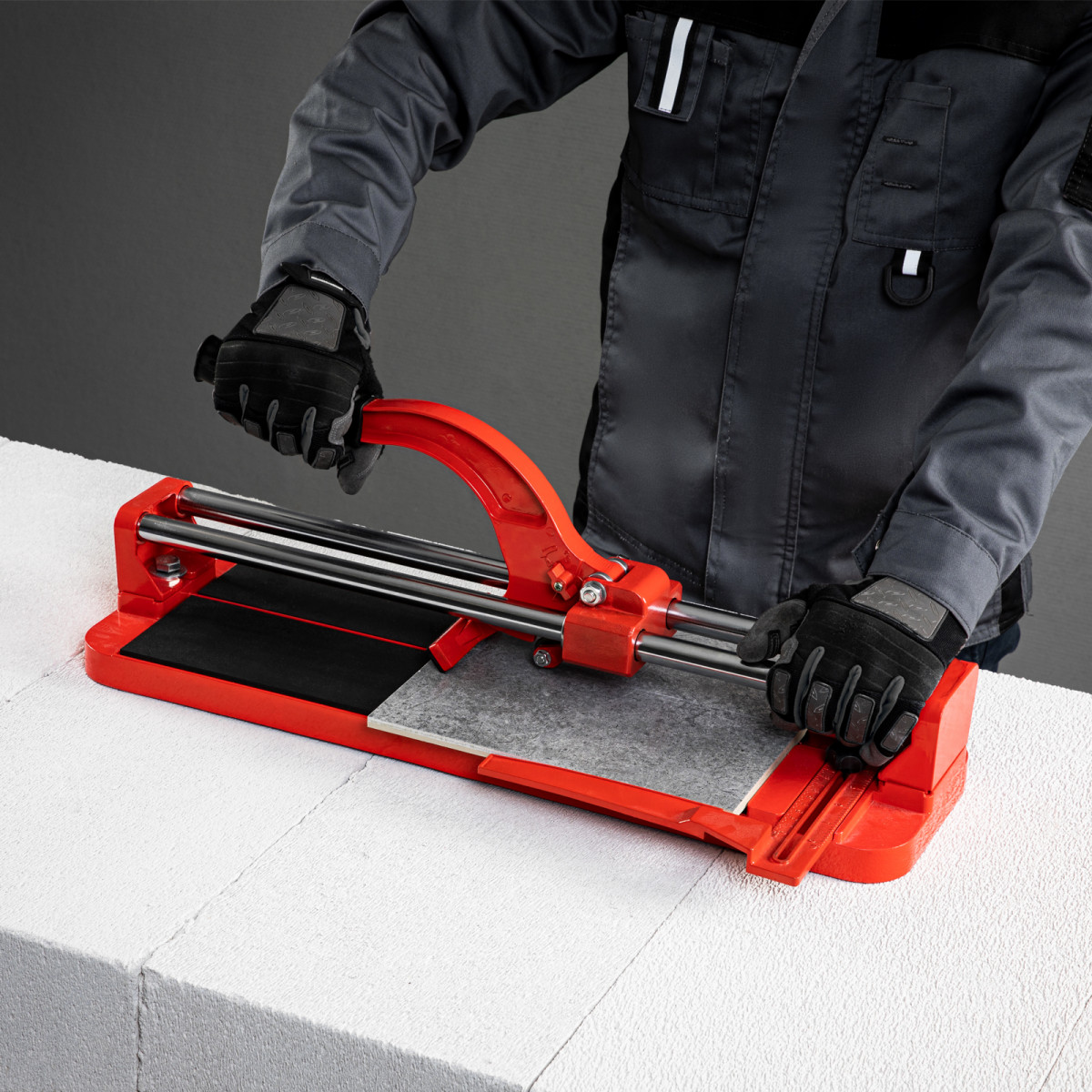 Плиткорез MTX 87605 с литой станиной, кареткой на подшипниках и усиленной рукояткой, используется для резки кафельной плитки размером до 400 х 16 мм. Ходовая каретка представляет собой массивный цельнолитой закрытый корпус, внутри которого размещаются цилиндрические шариковые подшипники, благодаря которым каретка перемещается по направляющим свободно даже при их загрязнении. Отсутствие люфтов в каретке позволяет выполнять рез максимально точно. Инструмент будет полезен мастерам в ходе бытовых облицовочных работ.