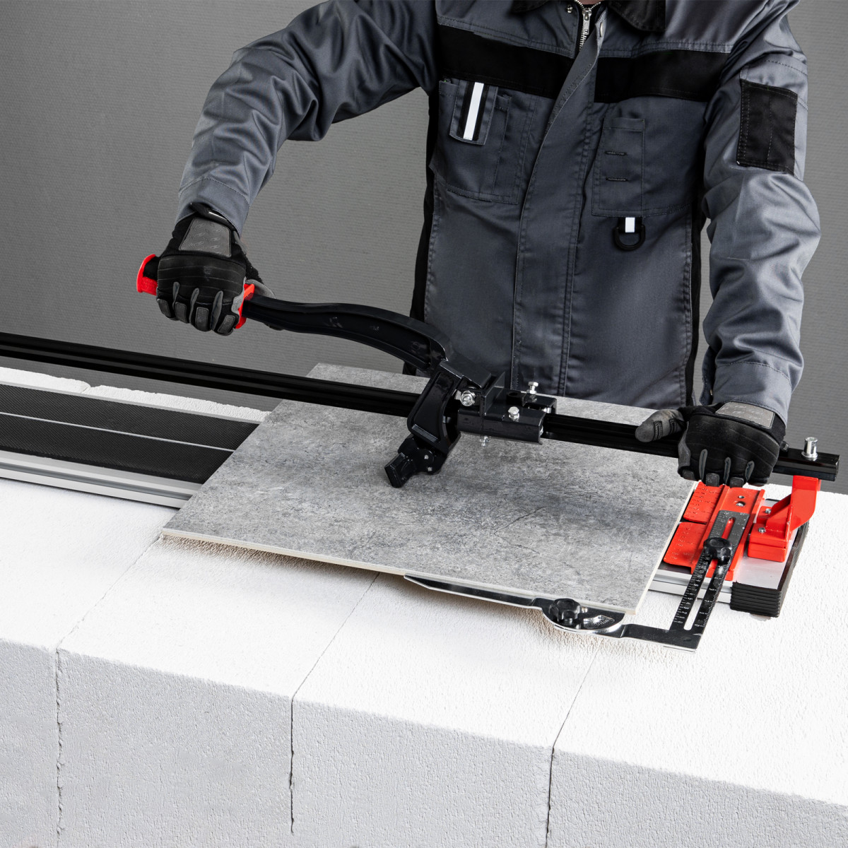 Рельсовый плиткорез MTX 87693 способен резать плитку длиной до 1200 мм и толщиной до 16 мм для придания ей необходимых размеров. Мощный разделитель справляется с резкой не только керамической, но и керамогранитной плитки. Продуманная конструкция позволяет производить разлом в любой точке поверхности плитки. Инструмент используется во время проведения облицовочных работ.