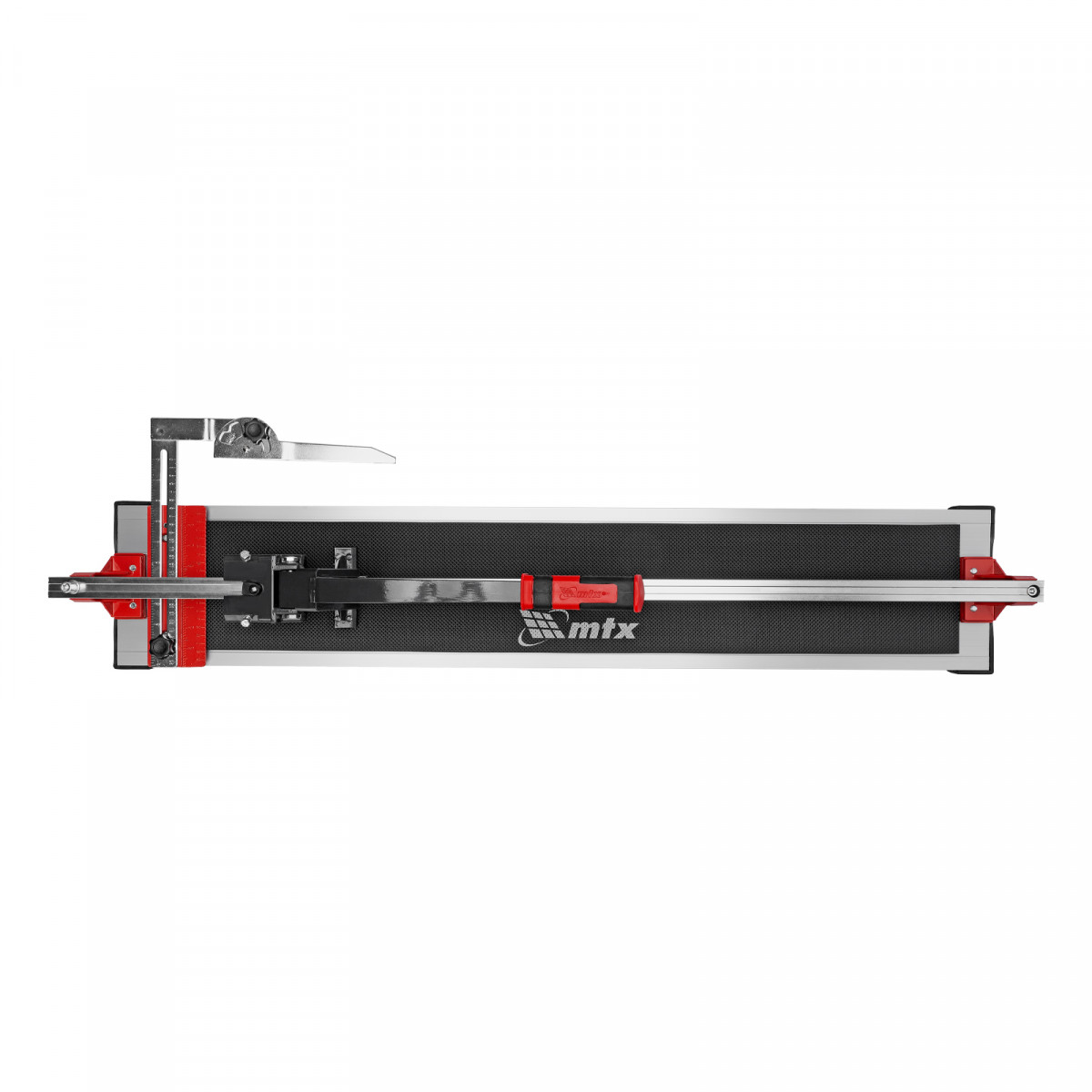 Рельсовый плиткорез MTX 87691 способен резать плитку длиной до 900 мм и толщиной до 16 мм для придания ей необходимых размеров. Мощный разделитель справляется с резкой не только керамической, но и керамогранитной плитки. Продуманная конструкция позволяет производить разлом в любой точке поверхности плитки. Инструмент используется во время проведения облицовочных работ.