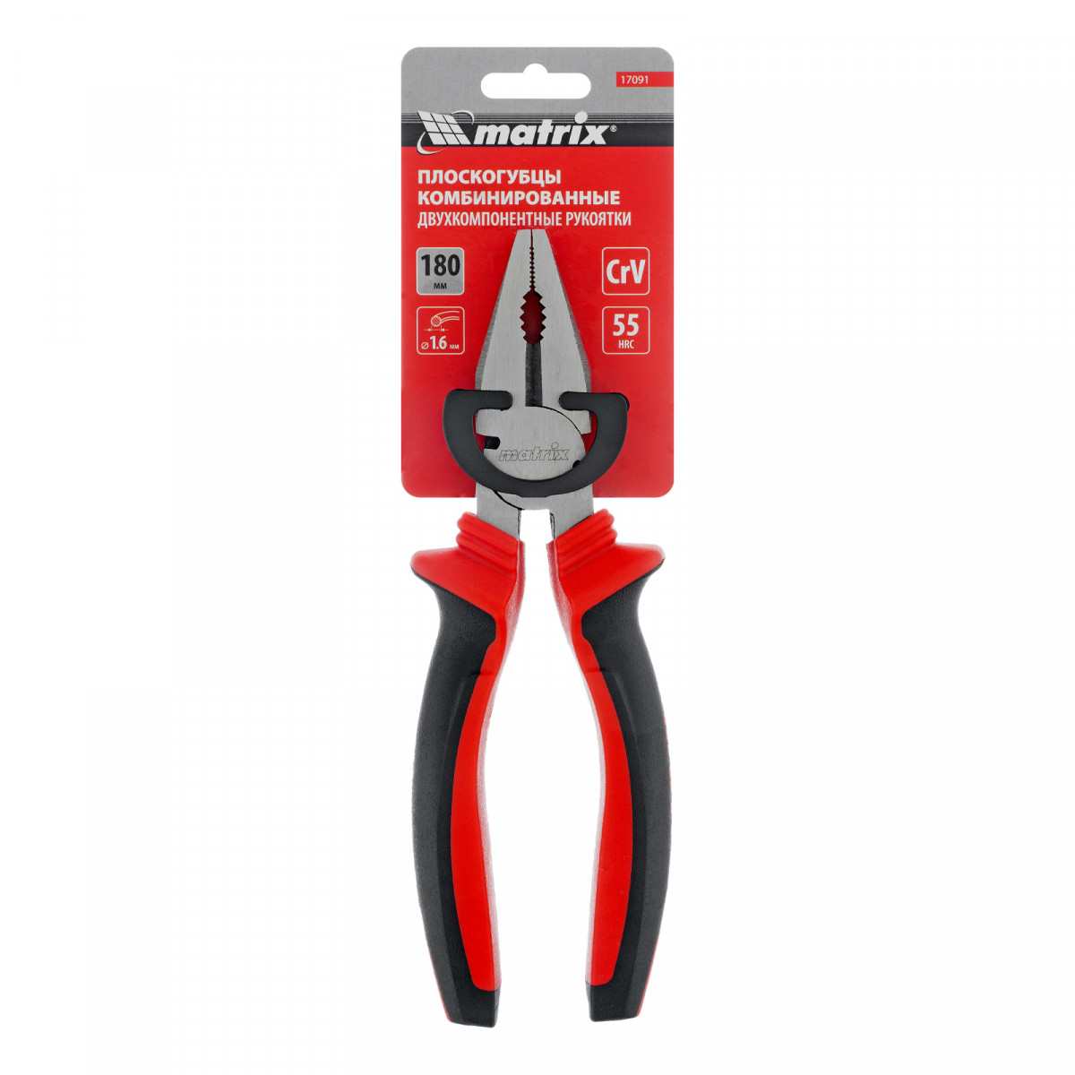 Плоскогубцы комбинированные, 180 мм, хром-ванадий, двухкомпонентные рукоятки Matrix