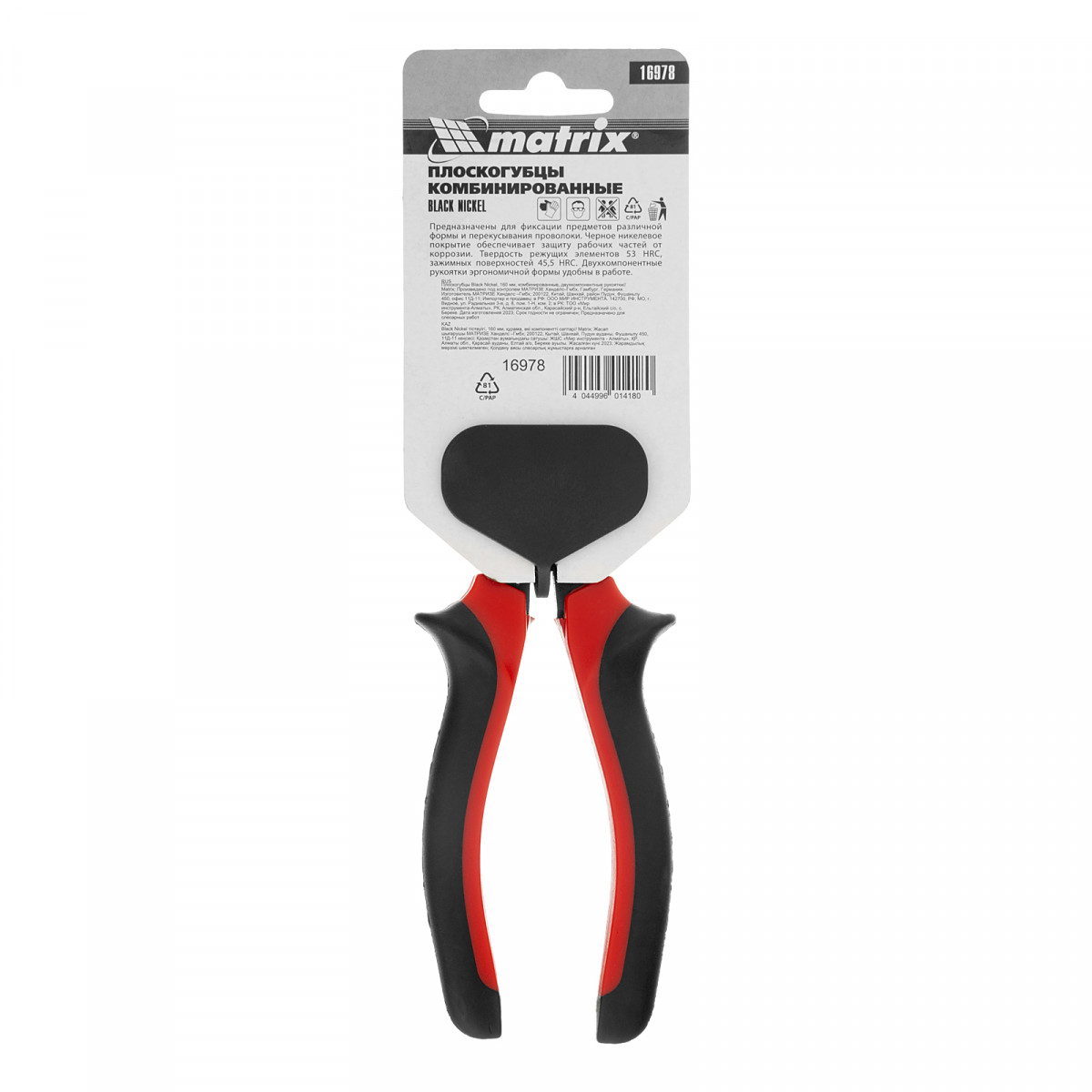 Плоскогубцы комбинированные Black Nickel, 160 мм, двухкомпонентные рукоятки Matrix