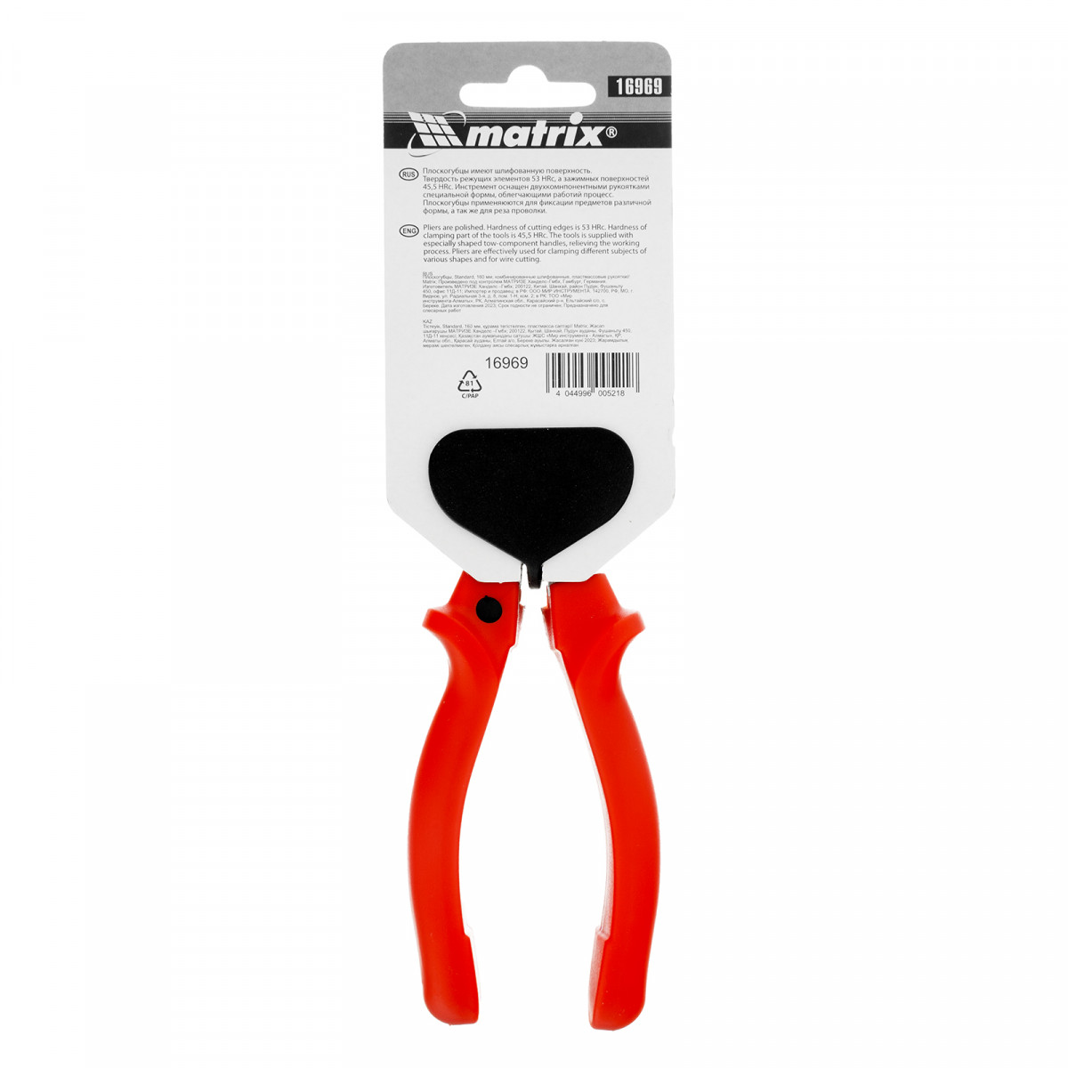 Плоскогубцы комбинированные Standard, 160 мм, шлифованные, пластмассовые рукоятки Matrix